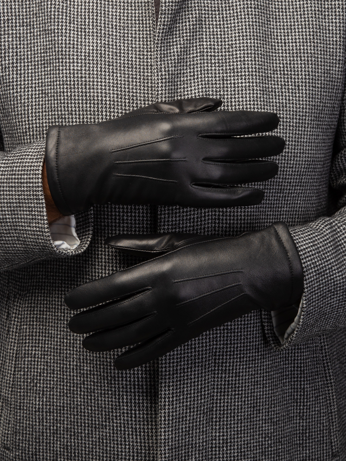 Перчатки мужские торговой марки ELEGANZZA производства Китай изготовлены из натуральной кожи ягненка. Подкладка: 100% шерсть. Отделка - декоративные швы 3 луча" на лицевой стороне. Длина манжеты от нижней точки большого пальца до края перчаток составляет - 5 см. Длина пальцев - укороченные."