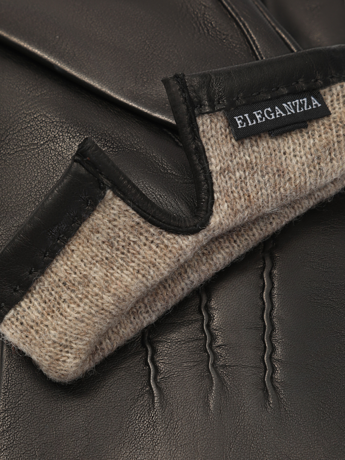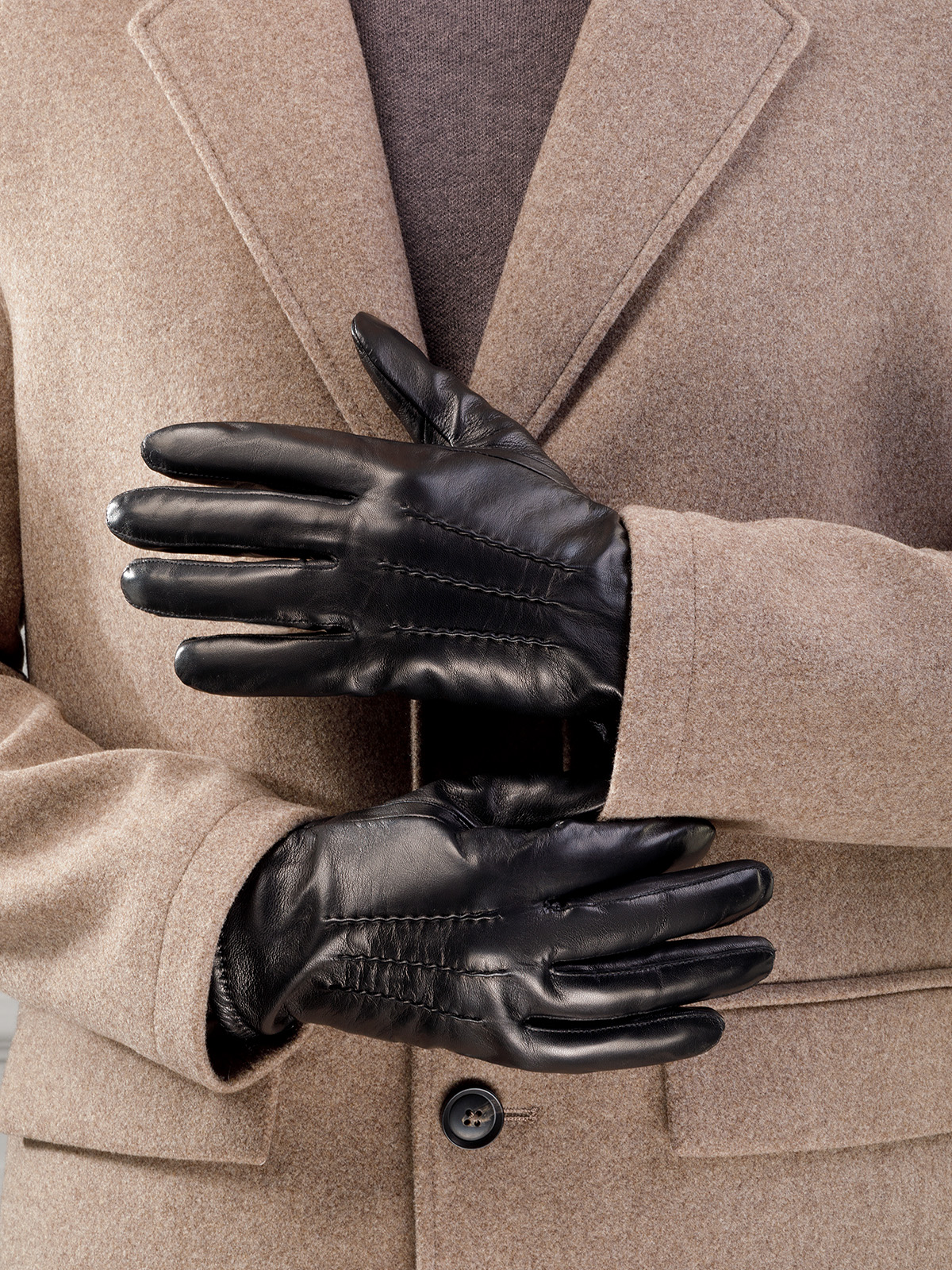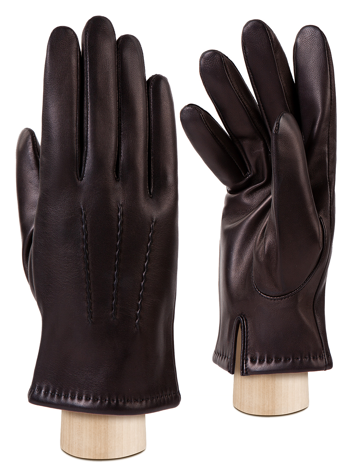 Перчатки мужские торговой марки ELEGANZZA из натуральной кожи ягненка. Производство Китай. Подкладка: 100% шерсть. На лицевой стороне декоративные швы три луча". Вдоль линии манжеты декоративные ручные стежки. На ладонной стороне разрез. Длина манжеты от нижней точки большого пальца до края перчаток - 45 см. Длина пальцев - средняя."