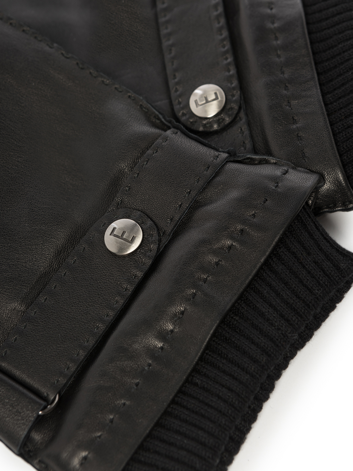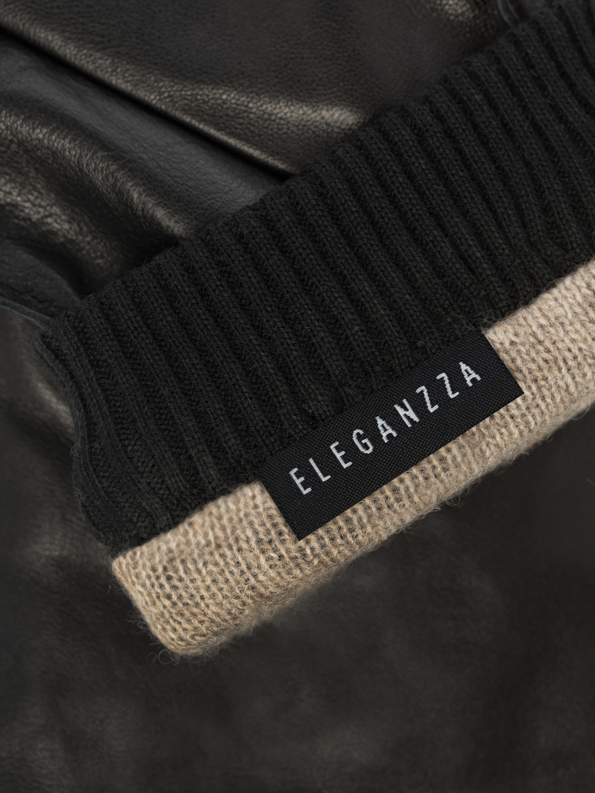 Перчатки мужские торговой марки ELEGANZZA выполнены из натуральной кожи ягненка. Производство Китай. Подкладка 100% шерсть. Подкладка - 100% шерсть. Отделка - декоративные швы по периметру очерчивающие силуэт руки. Манжет выполнен из трикотажа обрамлен декоративным ремешком на заклепке. Длина манжеты от нижней точки большого пальца до края перчаток - 7.5 см. Длина пальцев - средняя.
