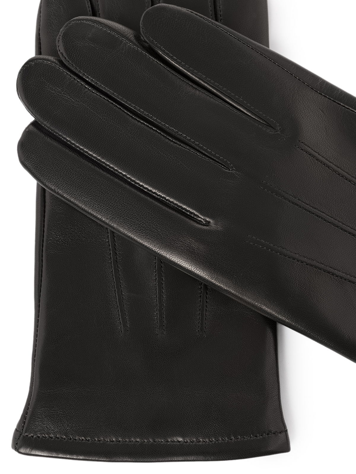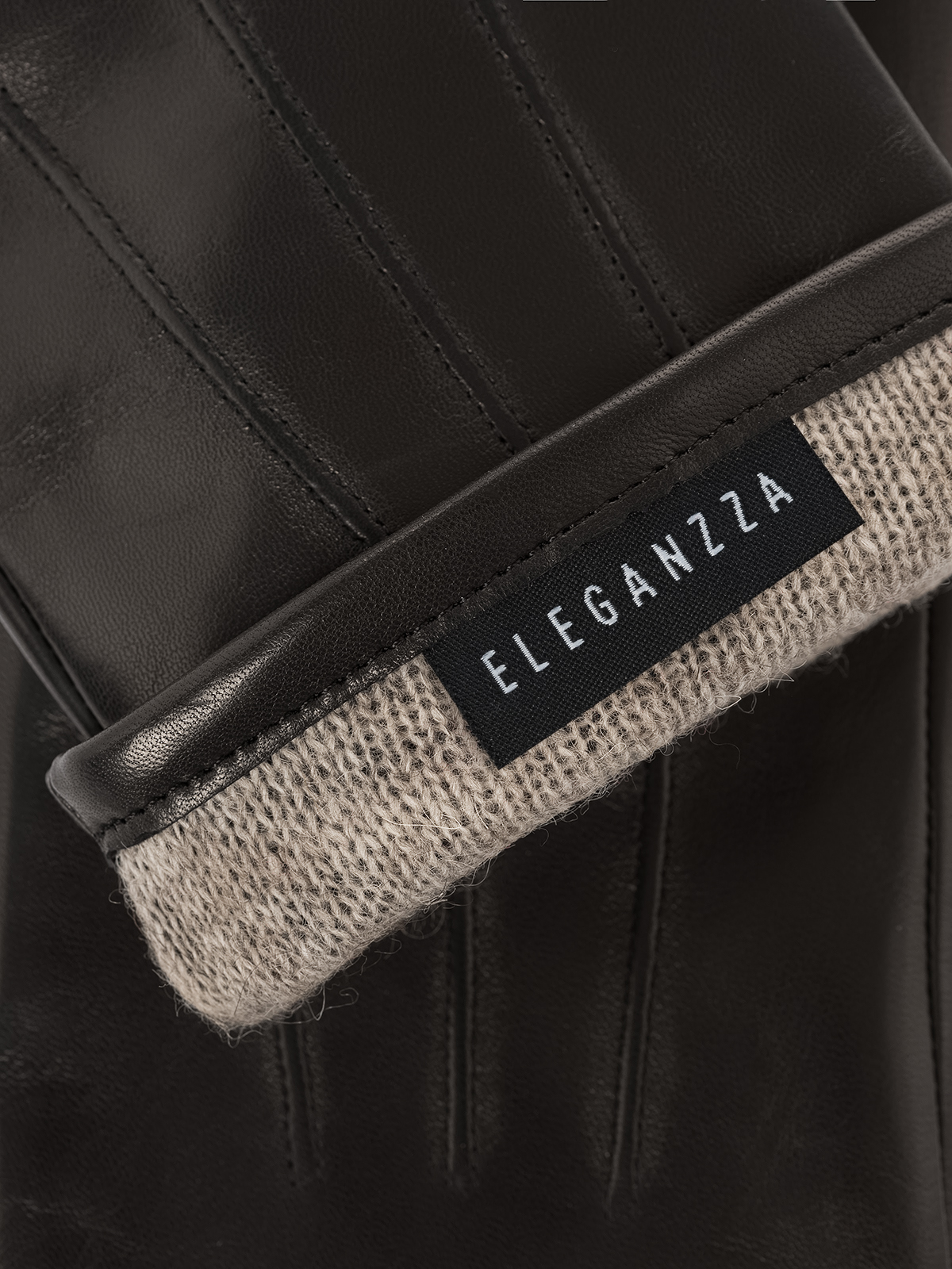 Перчатки торговой марки ELEGANZZA производства Китай из натуральной кожи ягненка. Подкладка: 100% шерсть. На лицевой стороне декоративные швы три луча". На ладонной стороне резинка. Длина манжета от нижней точки большого пальца до края перчаток - 6 см. Длина пальцев средняя."