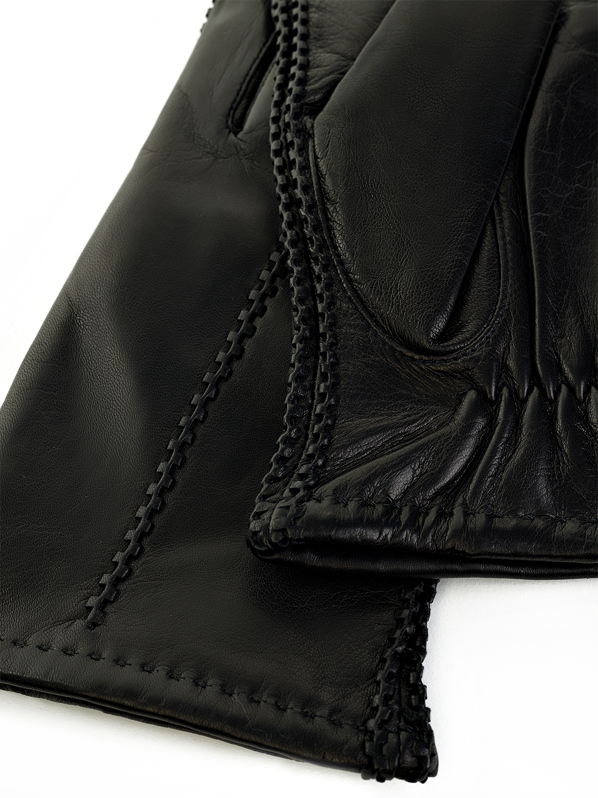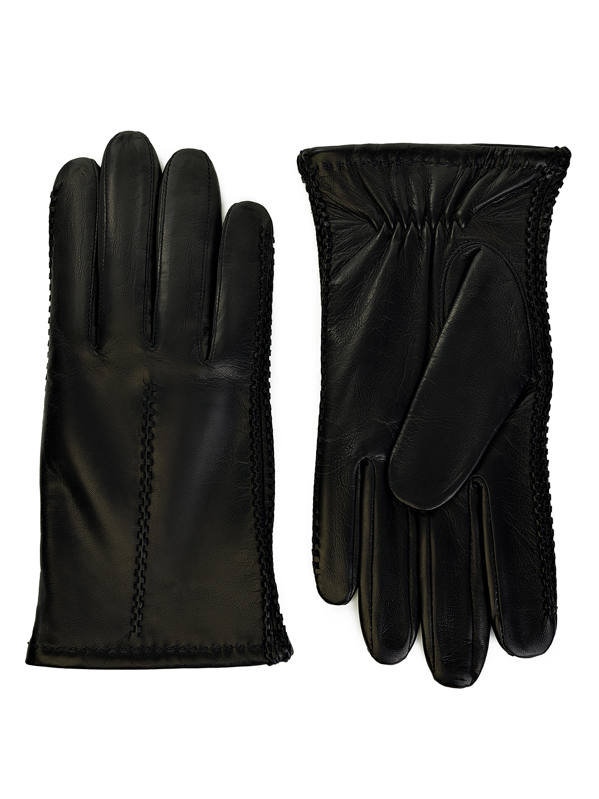 Перчатки мужские торговой марки ELEGANZZA из натуральной кожи ягненка. Производство Китай. Подкладка: 100% шерсть. Отделка - декоративные швы на лицевой стороне изделия. Длина манжеты от нижней точки большого пальца до края перчаток - 45 см. Длина пальцев - средняя.