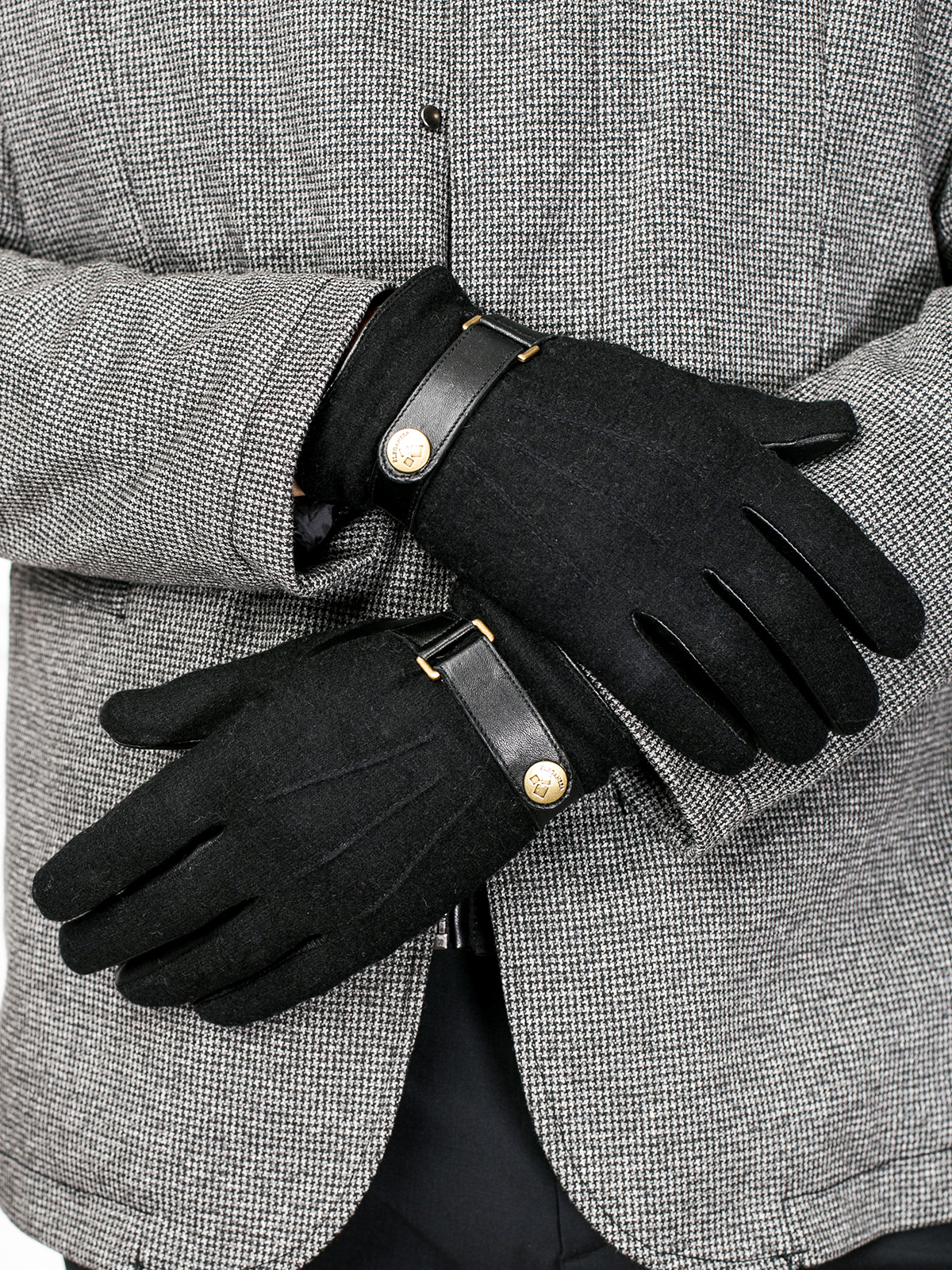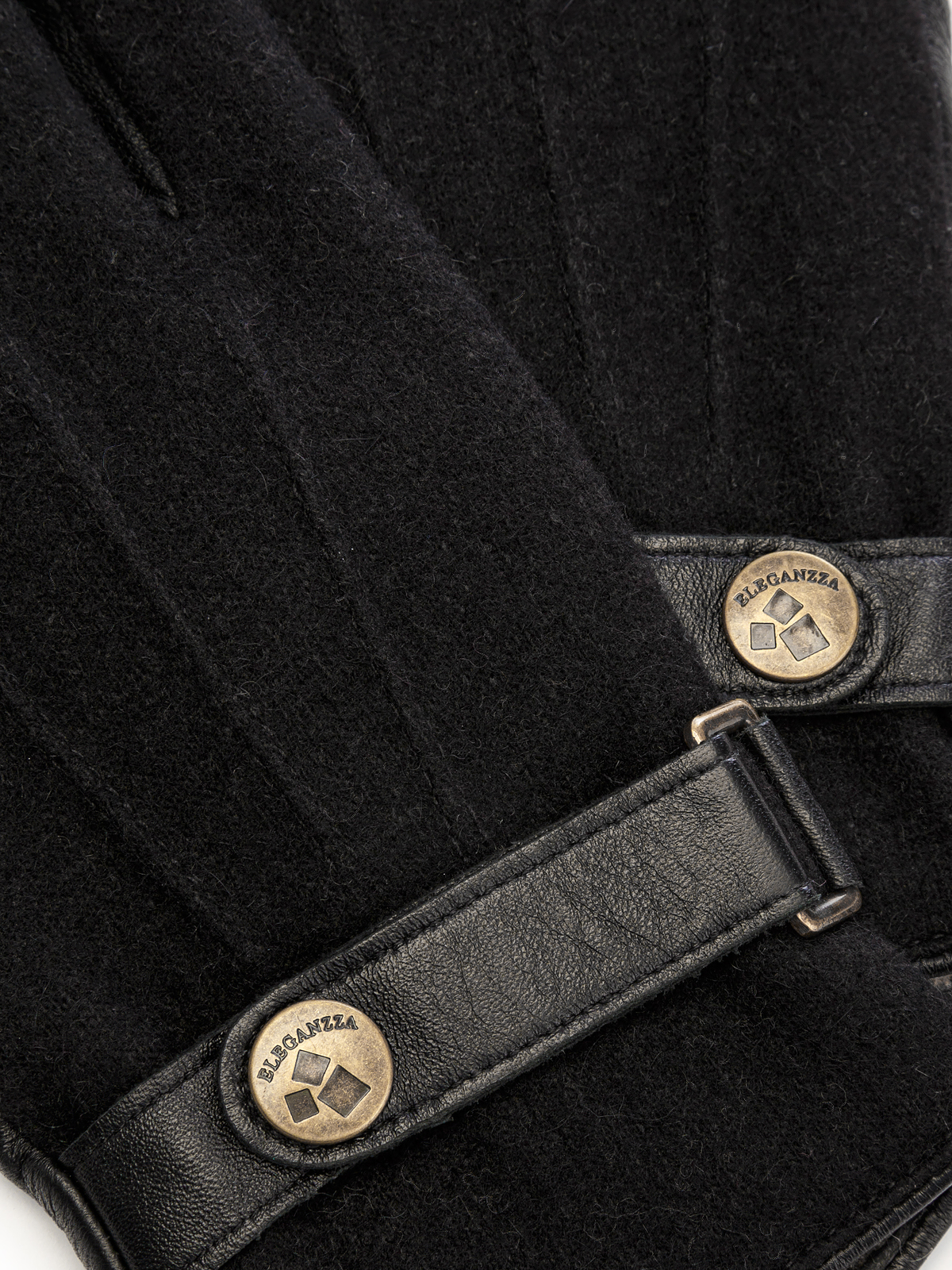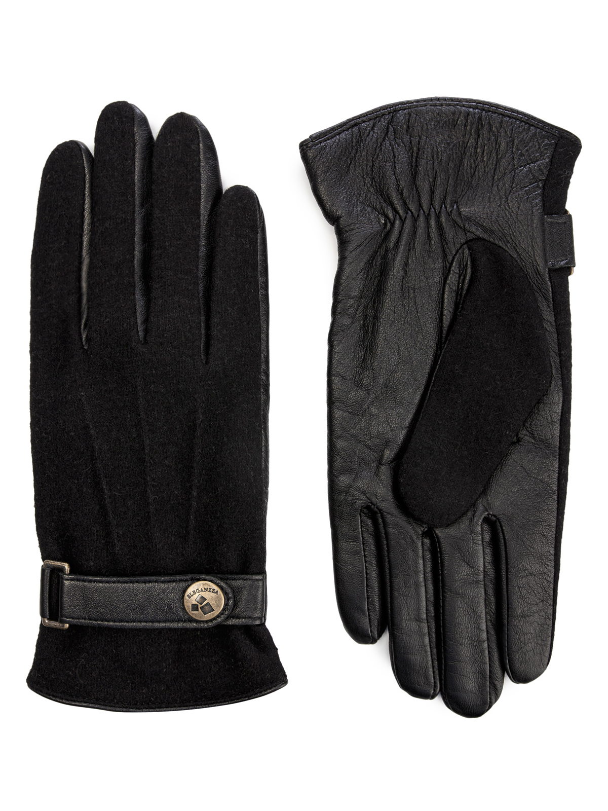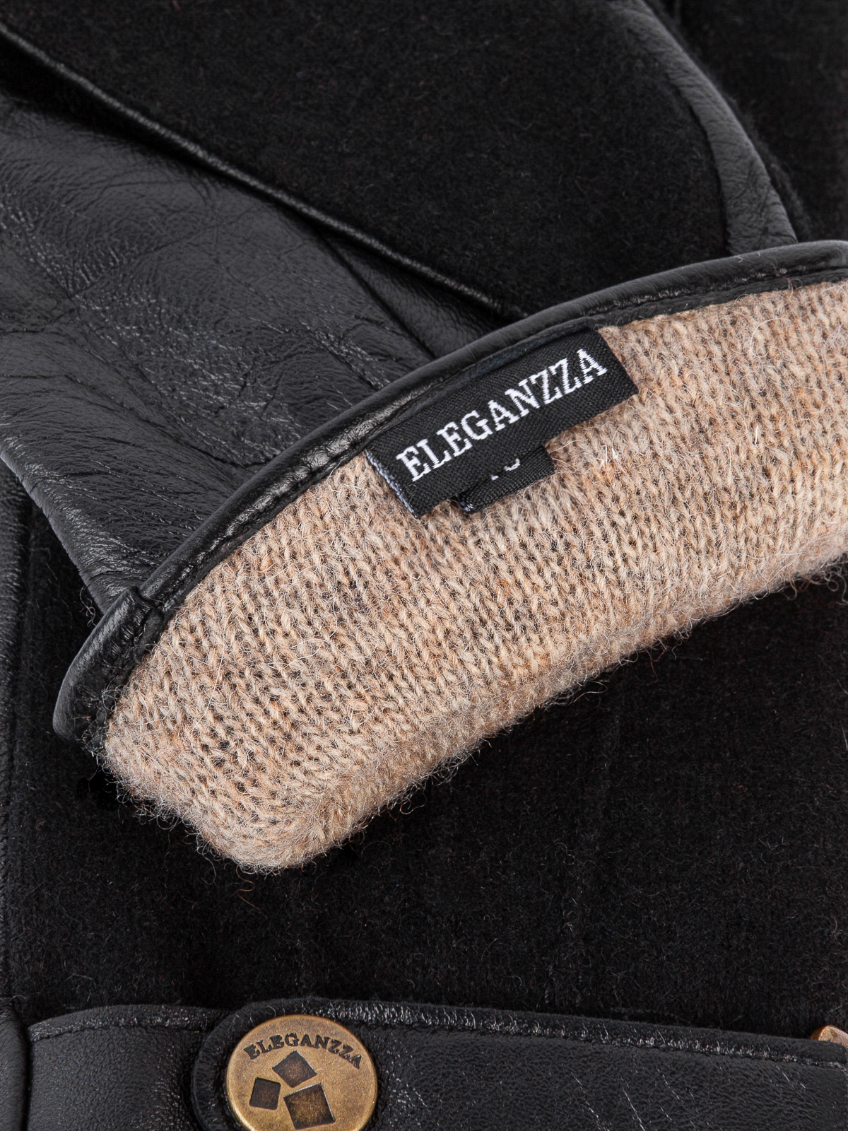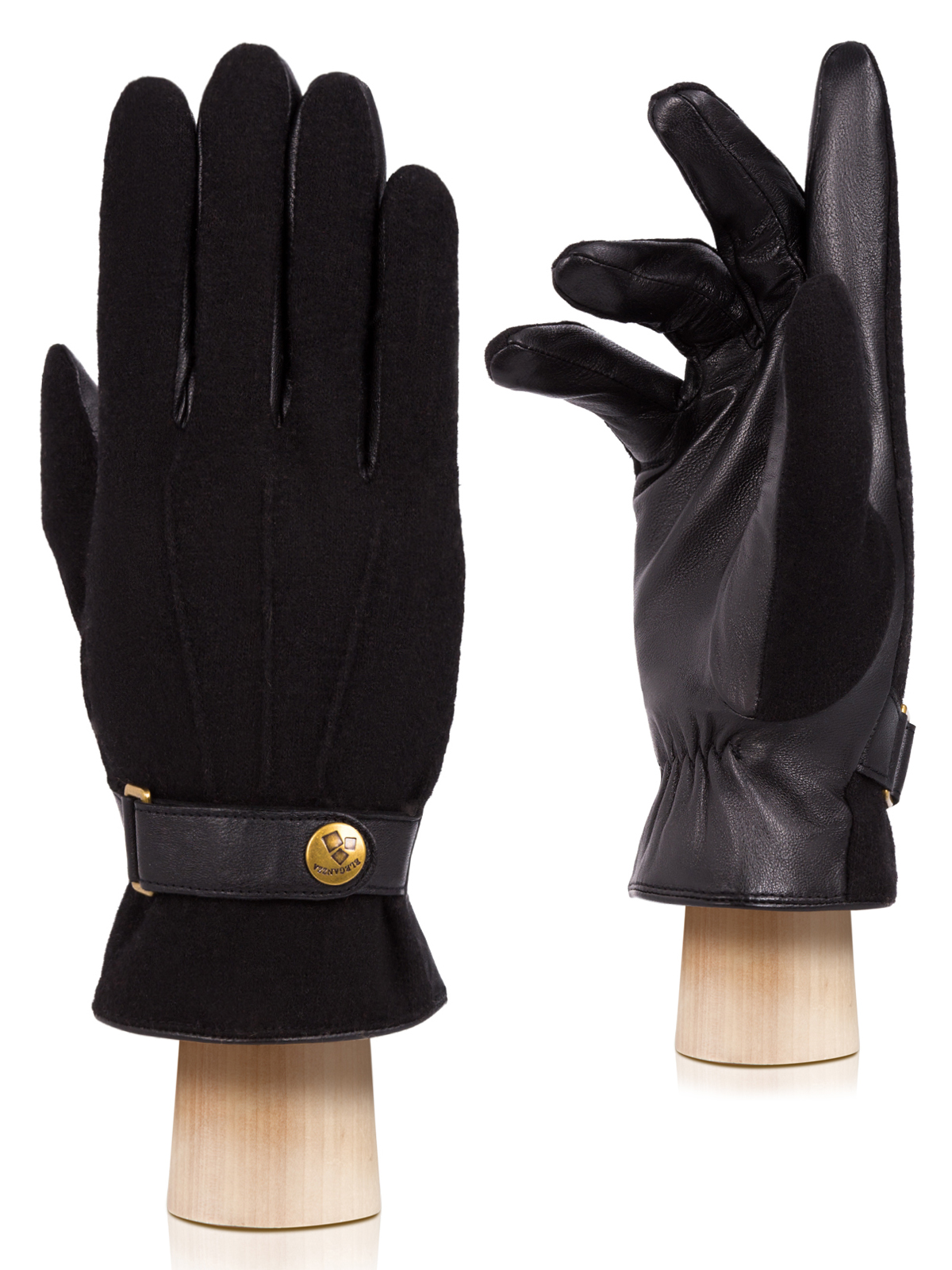 Перчатки мужские торговой марки ELEGANZZA производства Китай. Модель выполнена из натуральной кожи ягненка и трикотажа состав которого 80% кашемир 20% шерсть. Подкладка: 100% шерсть. На манжете ремешок для регулировки ширины перчатки на металлической кнопке. Данная модель позволяет работать с сенсорным экраном в перчатках. Длина манжеты от нижней точки большого пальца до края перчаток - 7 см. Длина пальцев - средняя.