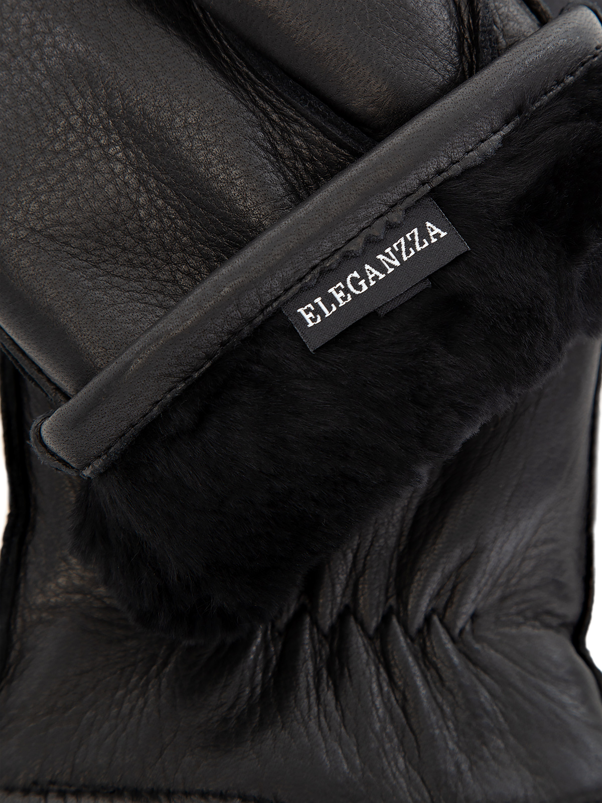 Перчатки торговой марки ELEGANZZA производства Китай выполнены из натуральной кожи оленя. Декоративная отделка три луча". Подкладка: натуральный мех (мутон). Длина манжеты от нижней точки большого пальца до края перчаток - 4.5 см. Длина пальцев - средняя."