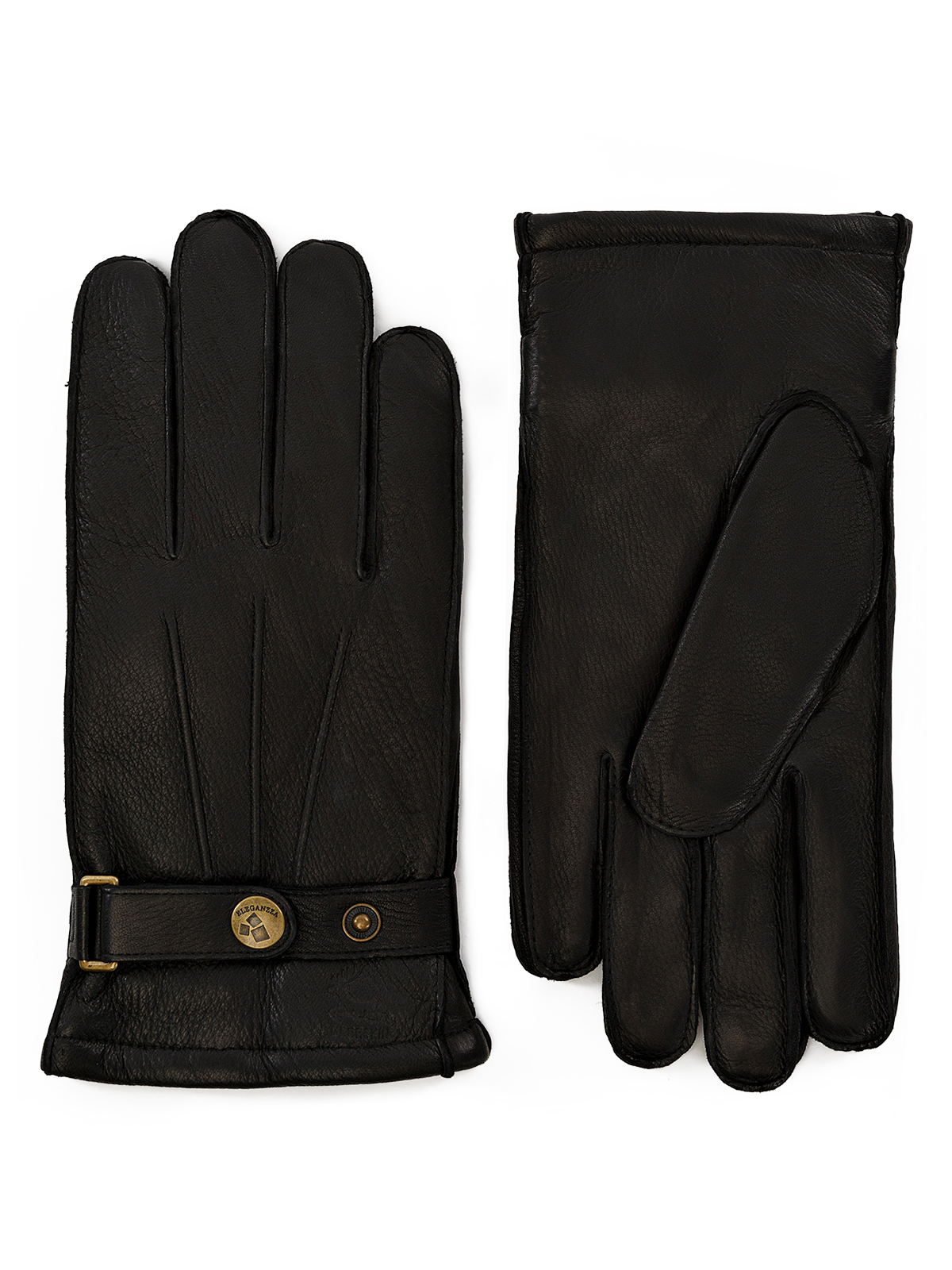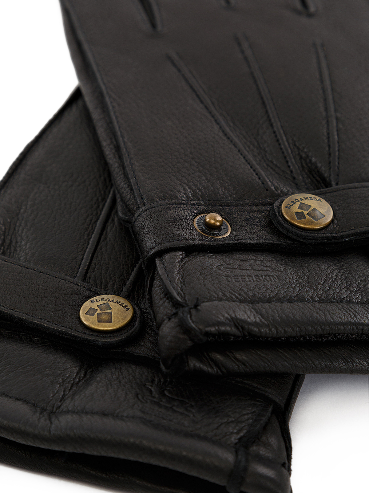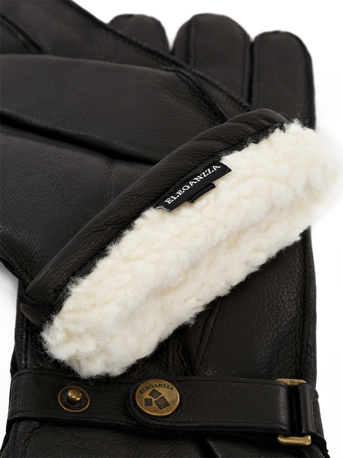 Перчатки торговой марки ELEGANZZA производства Китай изготовлены из натуральной кожи оленя. Отделка - декоративный ремень на запястье. Подкладка: натуральный мех ягненка. Длина манжеты от нижней точки большого пальца до края перчаток составляет 5.5 см. Пальцы средние.
