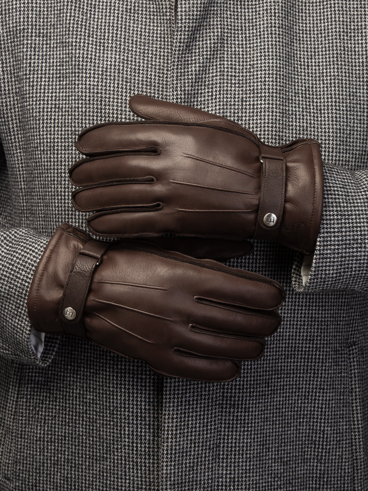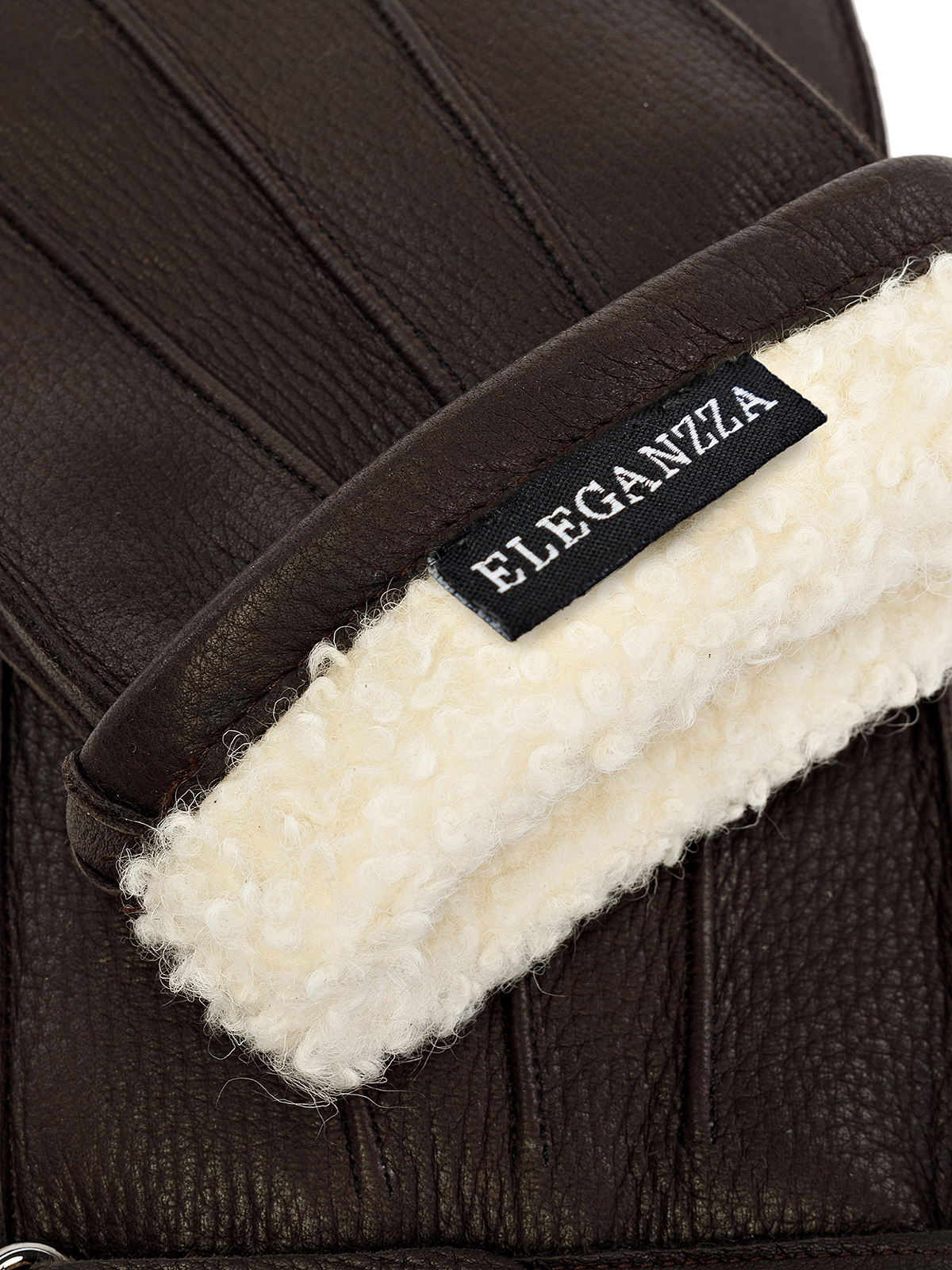 Перчатки торговой марки ELEGANZZA производства Китай изготовлены из натуральной кожи оленя. Отделка - декоративный ремень на запястье. Подкладка: натуральный мех ягненка. Длина манжеты от нижней точки большого пальца до края перчаток составляет 5.5 см. Пальцы средние.