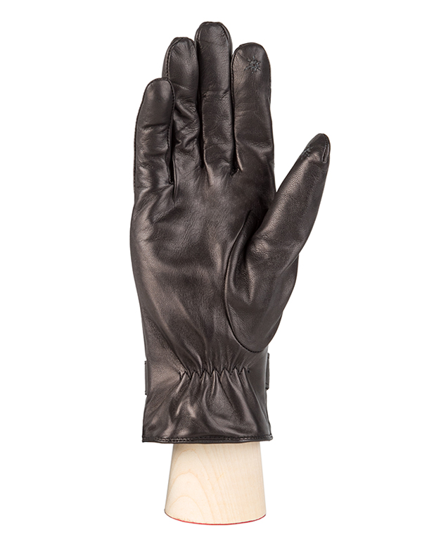 Перчатки торговой марки ELEGANZZA производства Италии изготовлены из натуральной кожи черного цвета. Подкладка: 85% шерсти 15% кашемира. Отделка - манжета украшена ремешком из натуральной кожи. Данная модель позволяет работать с сенсорным экраном. Длина манжеты от нижней точки большого пальца до края перчаток составляет - 5 см. Длина пальцев - средняя.