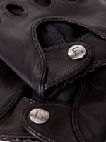 Автомобильные мужские перчатки торговой марки ELEGANZZA производства Китай выполнены из натуральной кожи ягненка. Подкладка: шелк. Отделка - перфорация на лицевой и ладонной сторонах вырез на лицевой стороне вырезы под косточки пальцев. Рабочая кнопка на лицевой стороне с фирменной символикой. Длина манжеты от нижней точки большого пальца до края перчаток - 45 см. Модель с обрезанными пальцами.