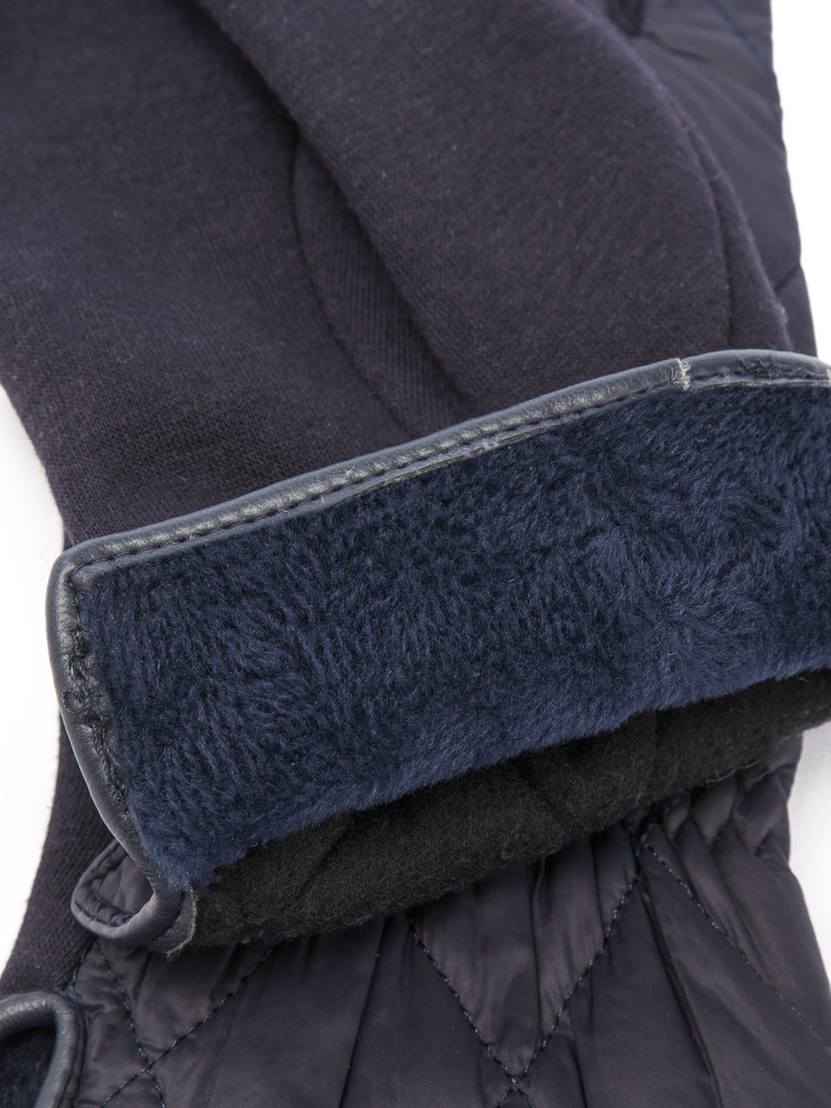 Стильные и комфортные перчатки из ткани 100% полиэстер с лицевой стороны и трикотажа 50% полиэстер и 50% хлопок с ладонной. Отделка - ассиметричная отстрочка на лицевой стороне. Модель выполнена на подкладке из флиса. Перчатки универсального размера подойдут на любую полноту руки. Длина манжеты от нижней точки большого пальца до края рукавицы - 6 см.