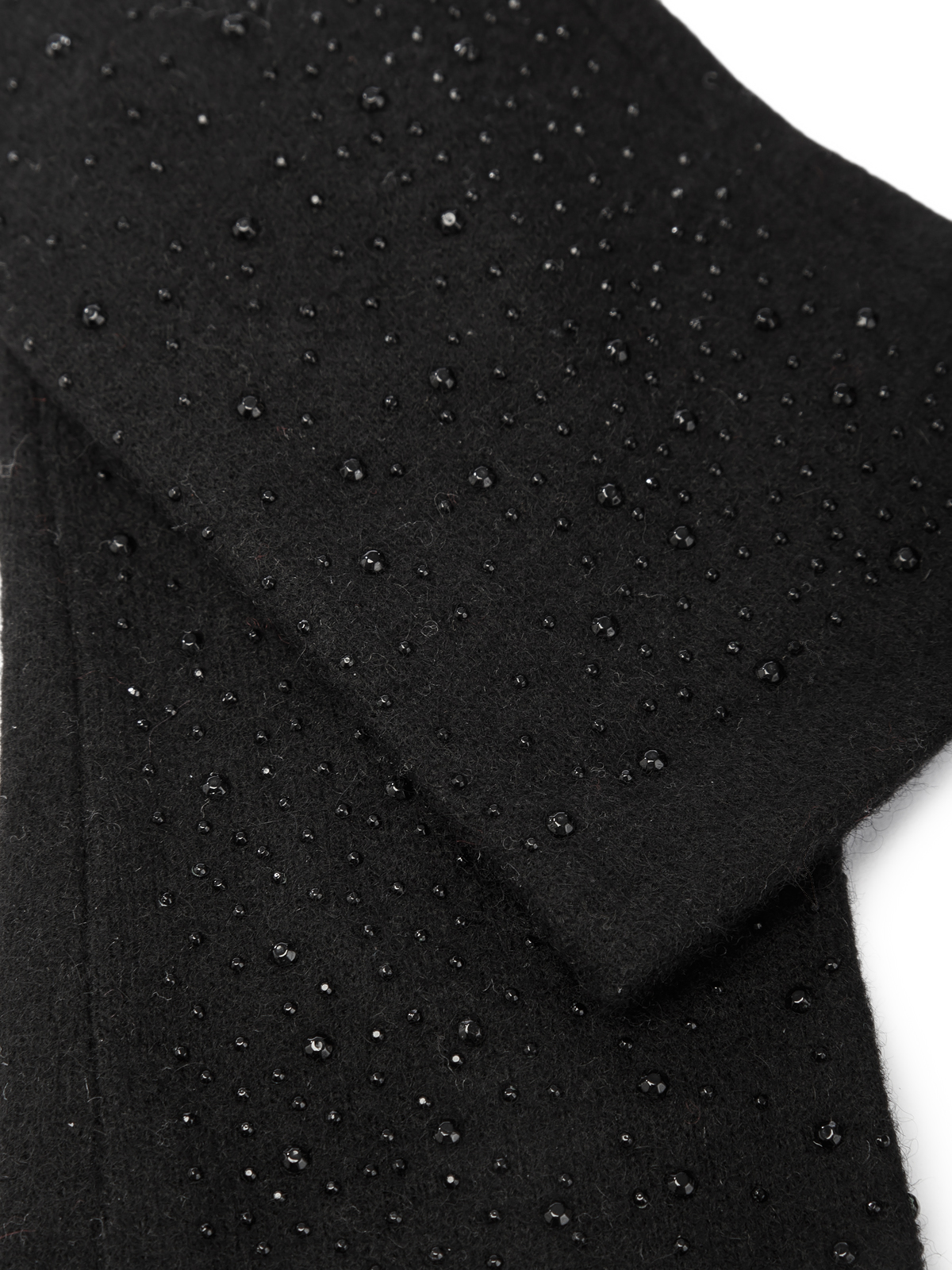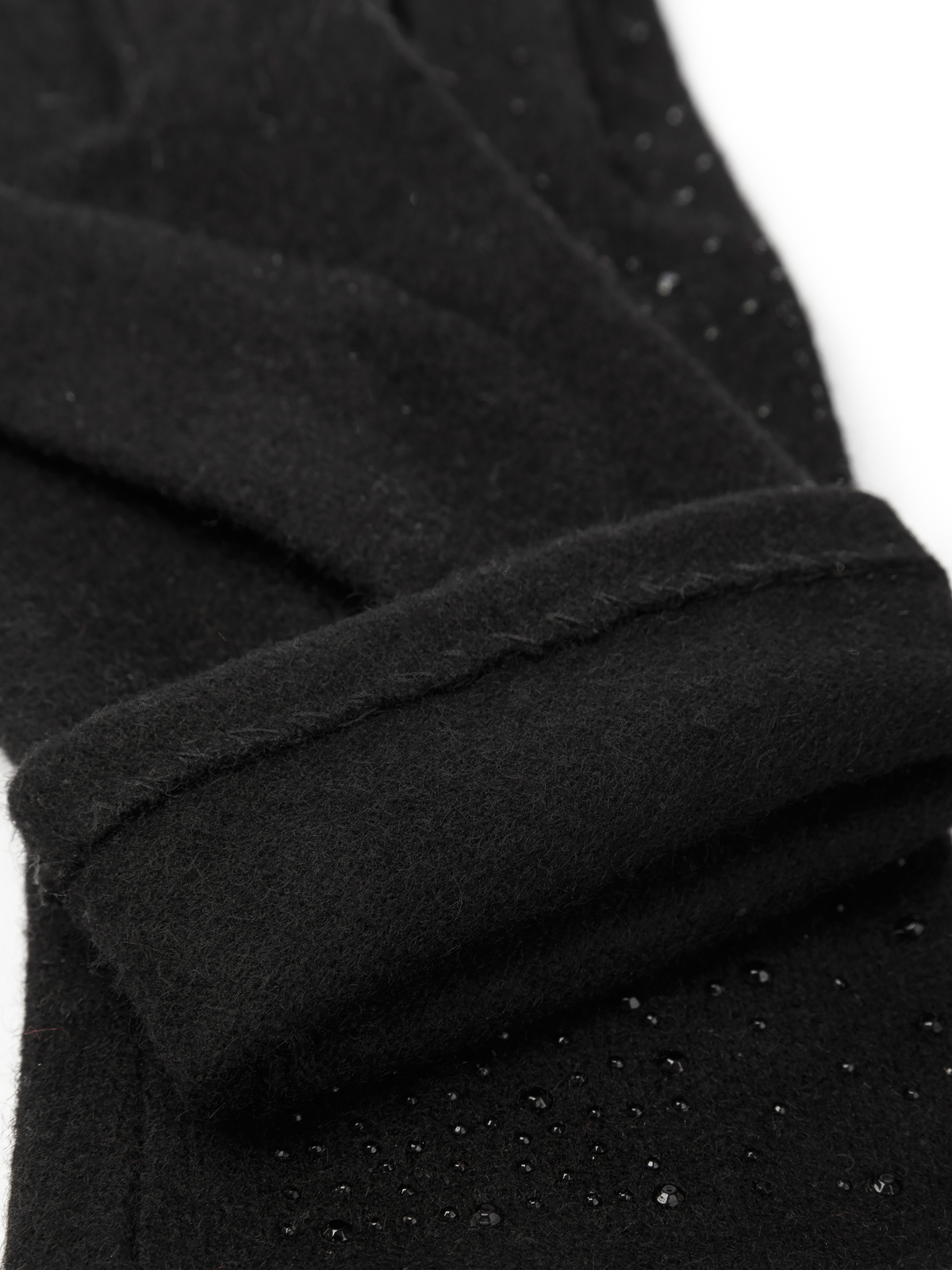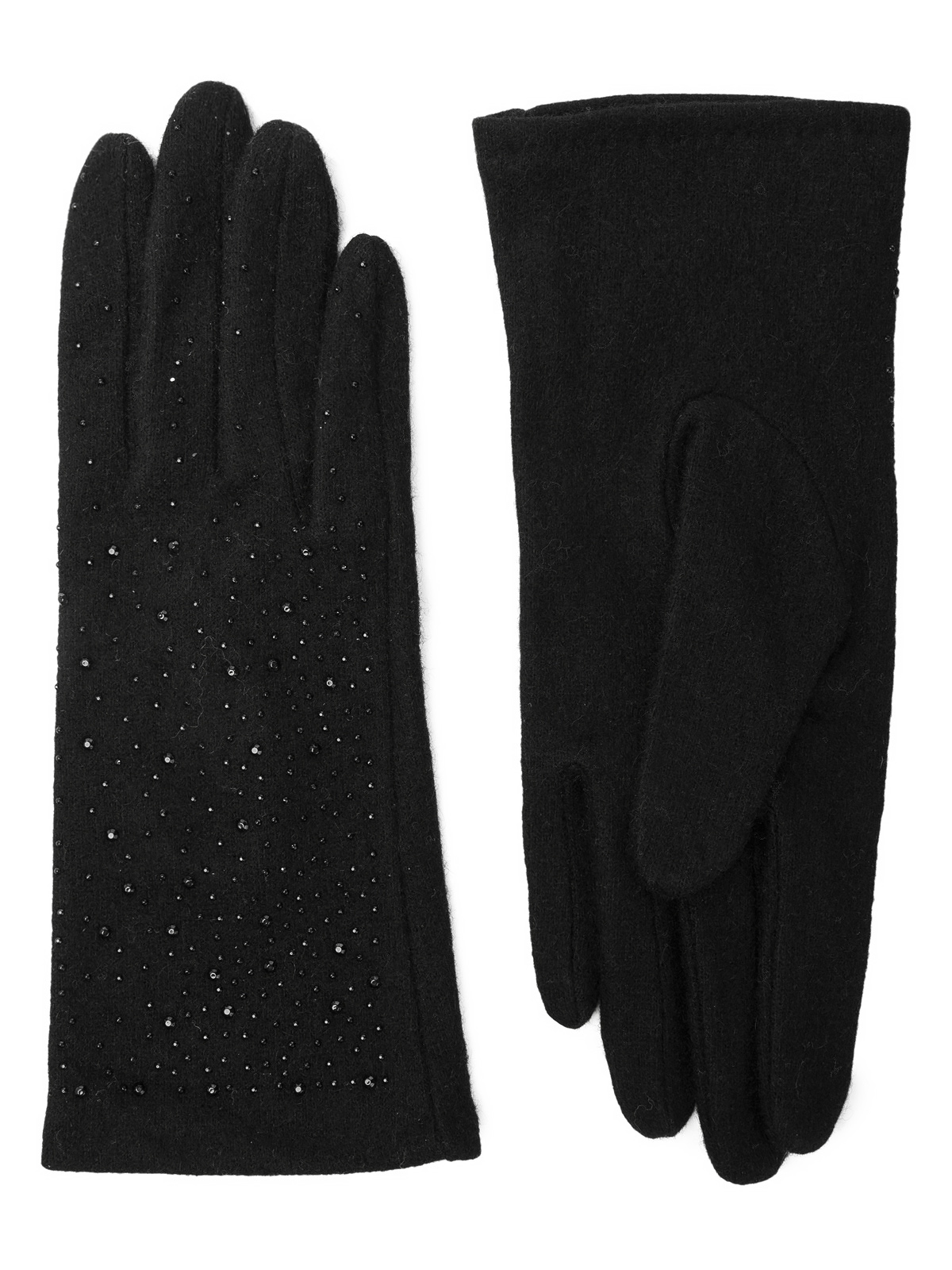 Перчатки торговой марки LABBRA производства Китай выполнены из трикотажной шерсти. Состав трикотажа: 80% шерсть 20% нейлон. Без подкладки. Отделка - россыпь страз в тон основному цвету на лицевой стороне. Длина манжеты от нижней точки большого пальца до края перчатки 6 см. Длина пальцев - средняя.