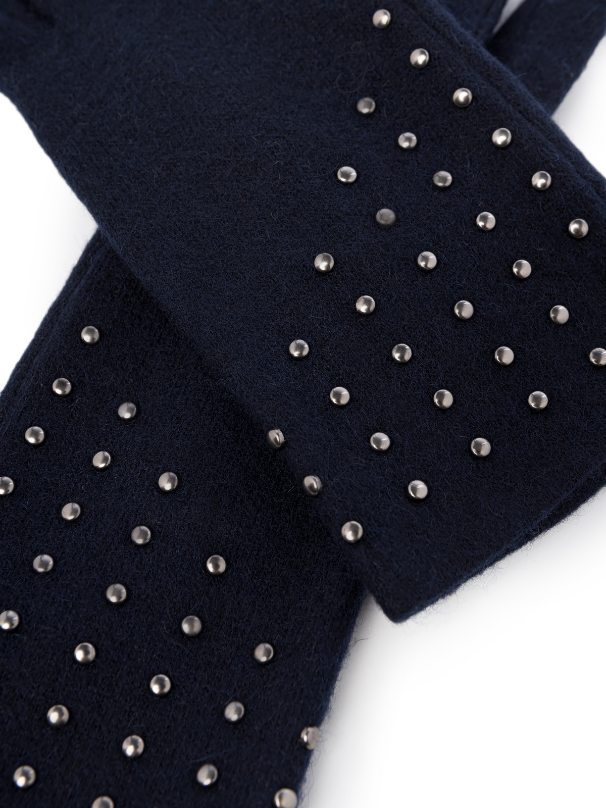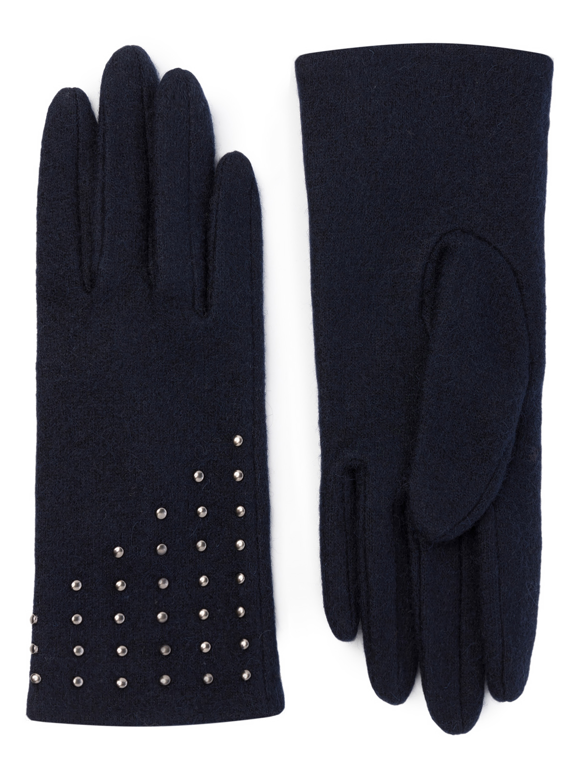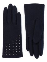 Перчатки торговой марки LABBRA производства Китай выполнены из трикотажной шерсти. Состав трикотажа: 80% шерсть 20% нейлон. Без подкладки. Отделка - декор ассиметричной формы из хольнитенов на лицевой стороне. Длина манжеты от нижней точки большого пальца до края перчатки 6 см. Длина пальцев - средняя.