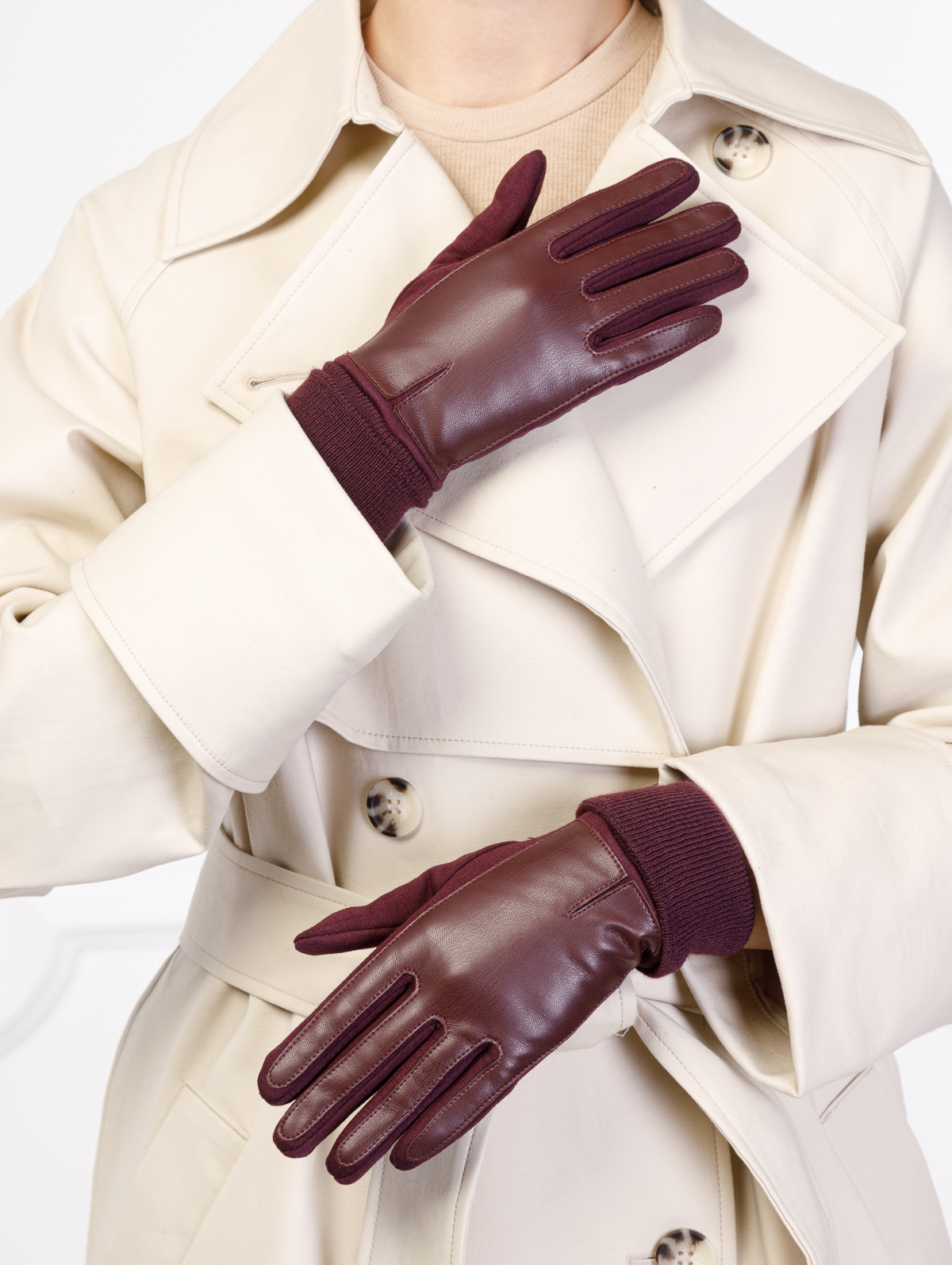 Перчатки женские торговой марки LABBRA производства Китай выполнены из трикотажа. Состав трикотажа: 50% хлопок 50% полиэстер. Отделка лицевой и ладонной части с использованием экокожи. Трикотажный манжет обеспечивает плотную посадку на запястье и дополнительное тепло. Длина манжеты от нижней точки большого пальца до края перчатки - 7.5 см. Длина пальцев - средняя. Модель перчатки универсального размера подойдёт на любую полноту руки благодаря хорошему стрейчу и эластичности трикотажа.