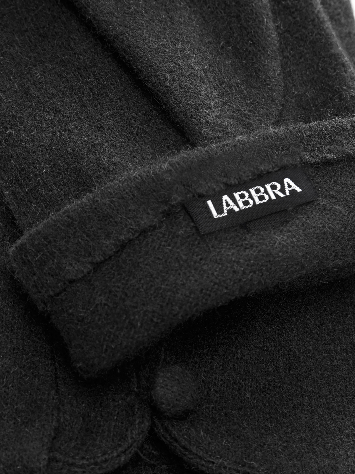 Перчатки торговой марки LABBRA производства Китай выполнены из трикотажной шерсти. Состав трикотажа: 80% шерсть 20% нейлон. Без подкладки. Отделка - вырез в форме капли украшенный пуговицей в тон на лицевой стороне. Длина манжеты от нижней точки большого пальца до края перчатки 6 см. Длина пальцев - средняя.