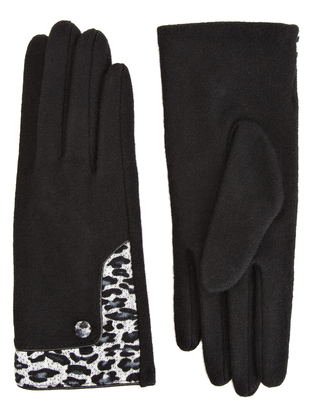 Перчатки торговой марки LABBRA производства Китай выполнены из трикотажной шерсти. Состав трикотажа: 80% шерсть 20% нейлон. Без подкладки. Отделка - декор из трикотажа с анималистичным принтом в нижней части манжеты на лицевой стороне. Длина манжеты от нижней точки большого пальца до края перчатки 6 см. Длина пальцев - средняя.
