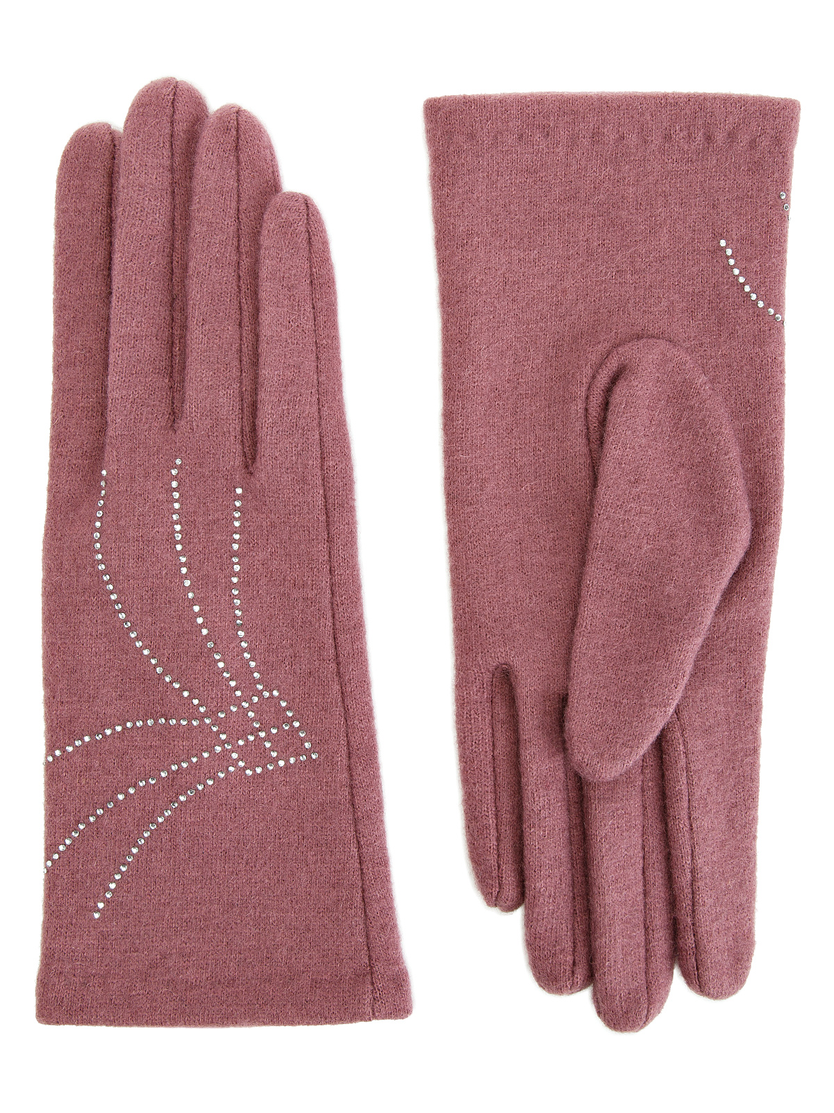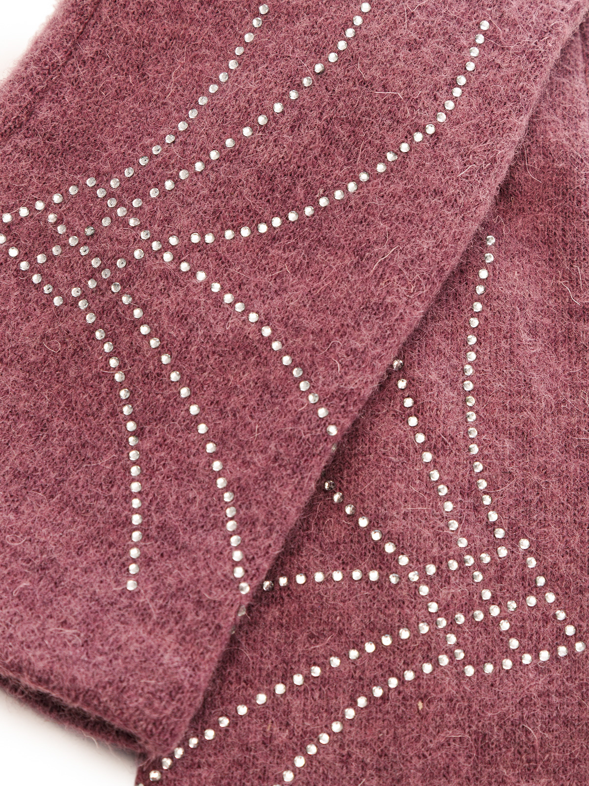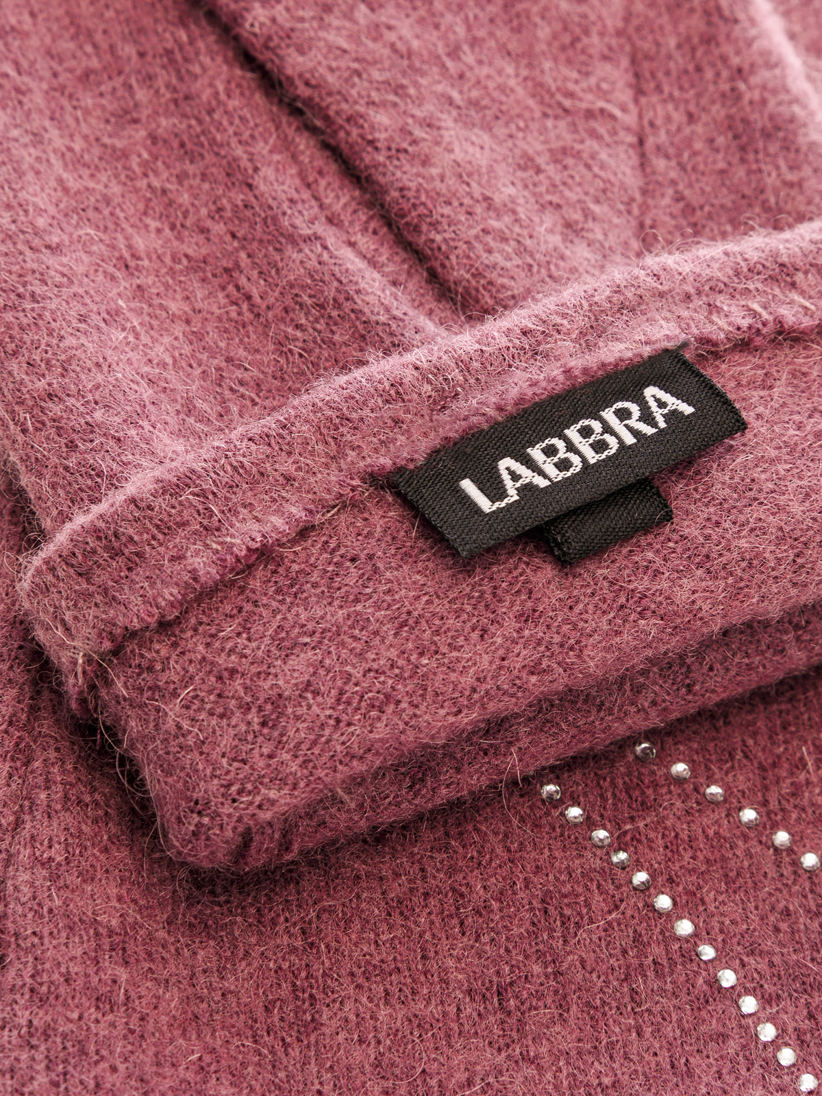 Перчатки торговой марки LABBRA производства Китай выполнены из трикотажной шерсти. Состав трикотажа: 80% шерсть 20% нейлон. Без подкладки. Отделка - декор из страз на лицевой стороне. Длина манжеты от нижней точки большого пальца до края перчатки 6 см. Длина пальцев - средняя.