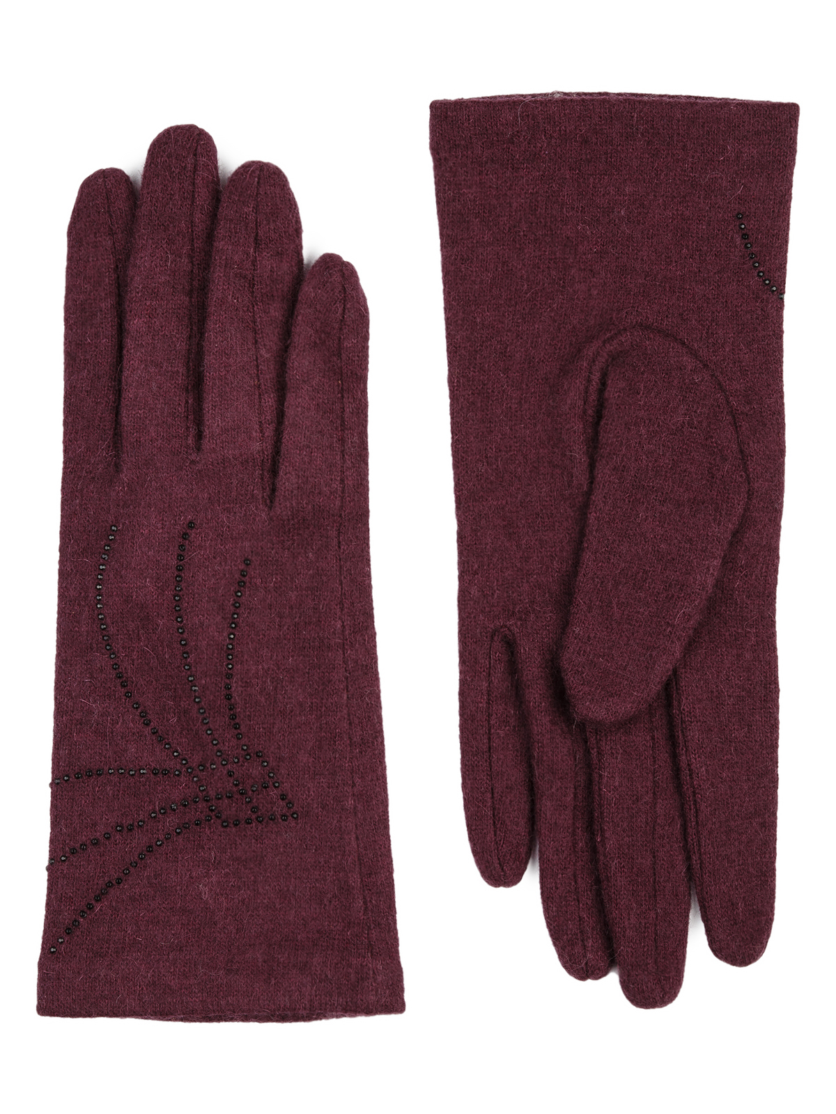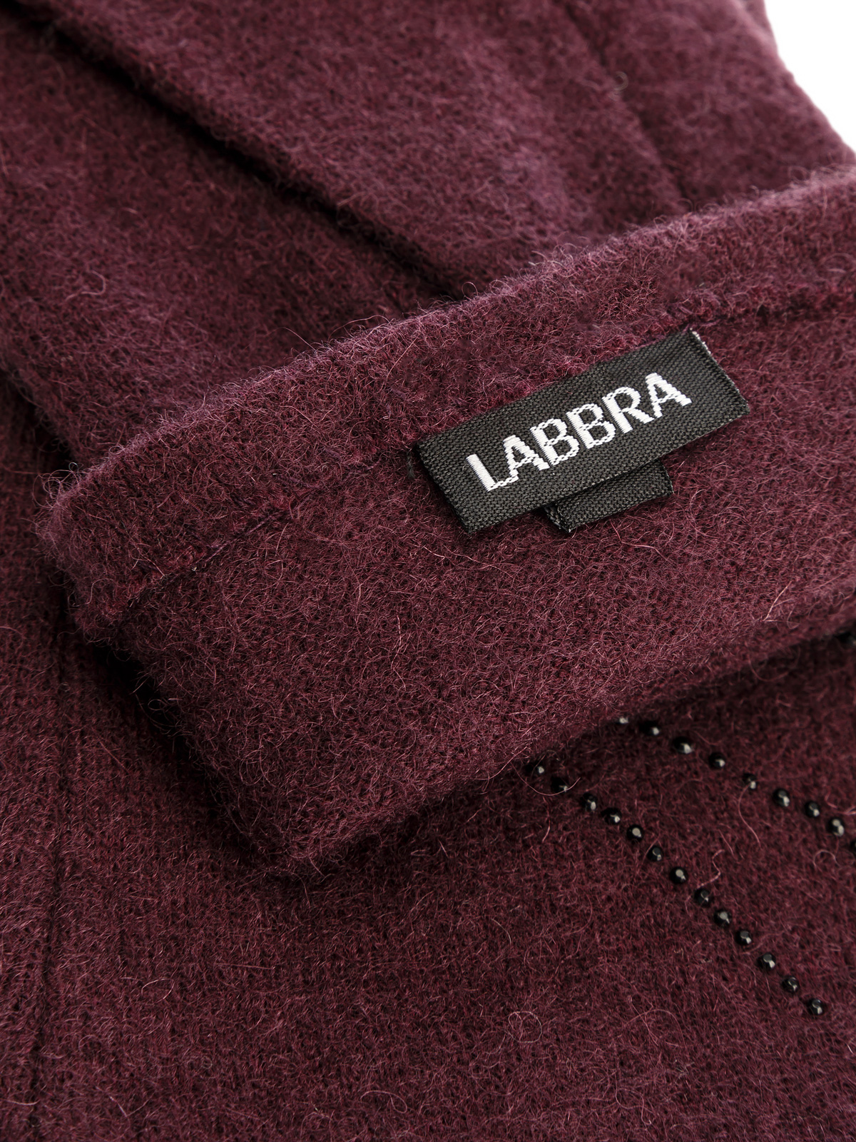 Перчатки торговой марки LABBRA производства Китай выполнены из трикотажной шерсти. Состав трикотажа: 80% шерсть 20% нейлон. Без подкладки. Отделка - декор из страз на лицевой стороне. Длина манжеты от нижней точки большого пальца до края перчатки 6 см. Длина пальцев - средняя.