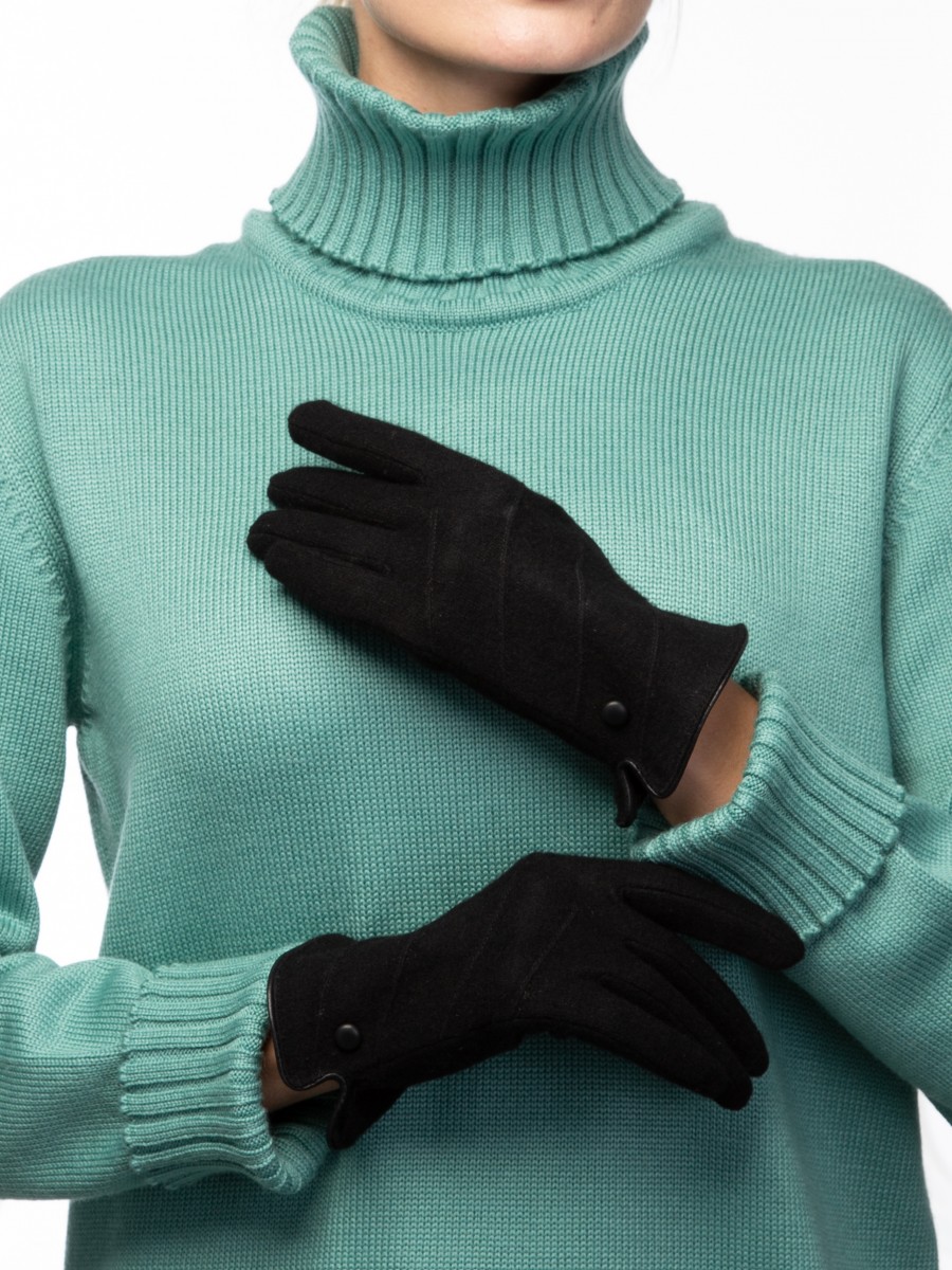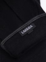 Перчатки торговой марки LABBRA производства Китай выполнены из трикотажной шерсти. Состав трикотажа: 80% шерсть 20% нейлон. Без подкладки. Отделка - декоративные швы на лицевой стороне. Край манжеты и декоративная пуговица обтянуты заменителем кожи. Длина манжеты от нижней точки большого пальца до края перчатки - 65 см. Длина пальцев - средняя.