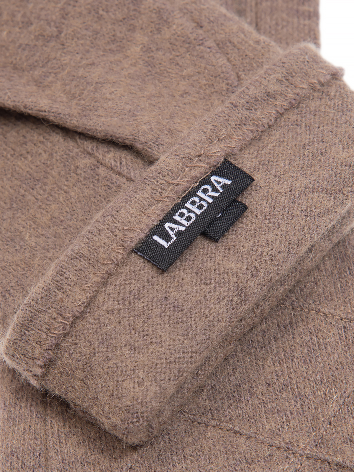 Перчатки торговой марки LABBRA производства Китай выполнены из трикотажной шерсти. Состав трикотажа: 80% шерсть 20% нейлон. Без подкладки. Отделка - декоративные строчки ромбами на лицевой стороне. Длина манжеты от нижней точки большого пальца до края перчатки 5 см. Длина пальцев - средняя.