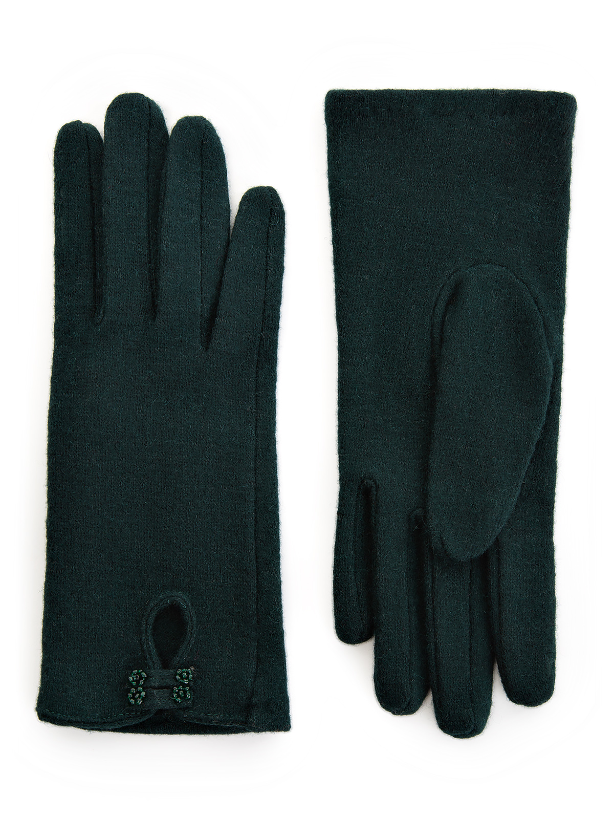Перчатки торговой марки LABBRA производства Китай выполнены из трикотажной шерсти. Состав трикотажа: 80% шерсть 20% нейлон. Без подкладки. Отделка - декоративный вырез с планками отделанными бисером. Нижний край перчатки и разрез на лицевой стороне окантованы материалом перчатки. Длина манжеты от нижней точки большого пальца до края перчатки - 55 см. Длина пальцев - средняя.