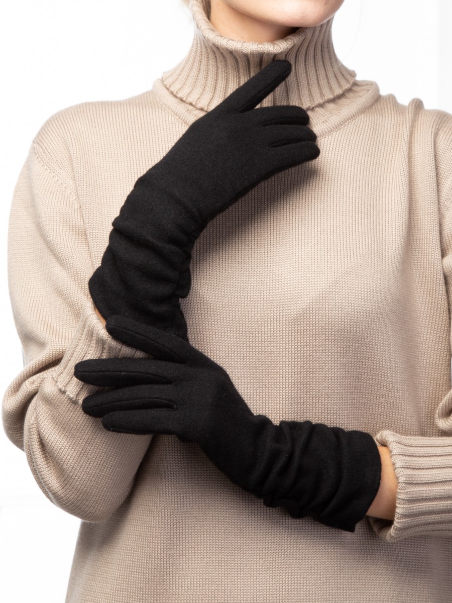 Перчатки торговой марки LABBRA производства Китай выполнены из трикотажной шерсти. Состав трикотажа: 80% шерсть 20% нейлон. Отделка - декоративная сборка по всей длине манжеты. Длина манжеты от нижней точки большого пальца до края перчатки - 10 см. Длина пальцев - средняя.