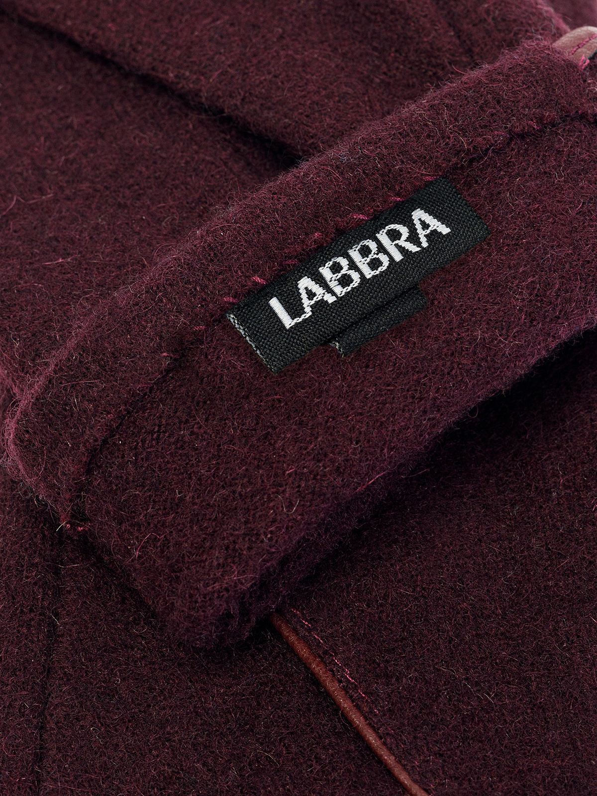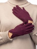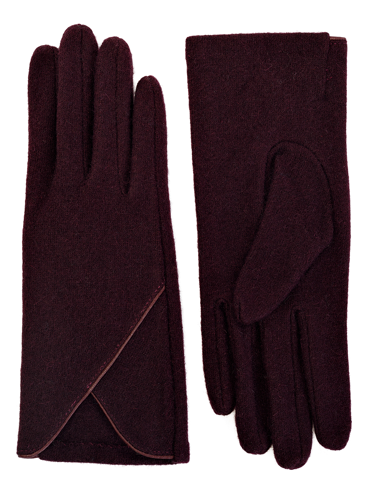 Перчатки женские торговой марки LABBRA производства Китай выполнены из трикотажной шерсти. Состав трикотажа: 80% шерсть 20% нейлон. Модель без подкладки. Отделка - декоративный кант на манжете расходящийся от линии разреза на лицевой стороне перчатки выполненный из экокожи. Длина манжеты от нижней точки большого пальца до края перчатки - 65 см. Длина пальцев - средняя.