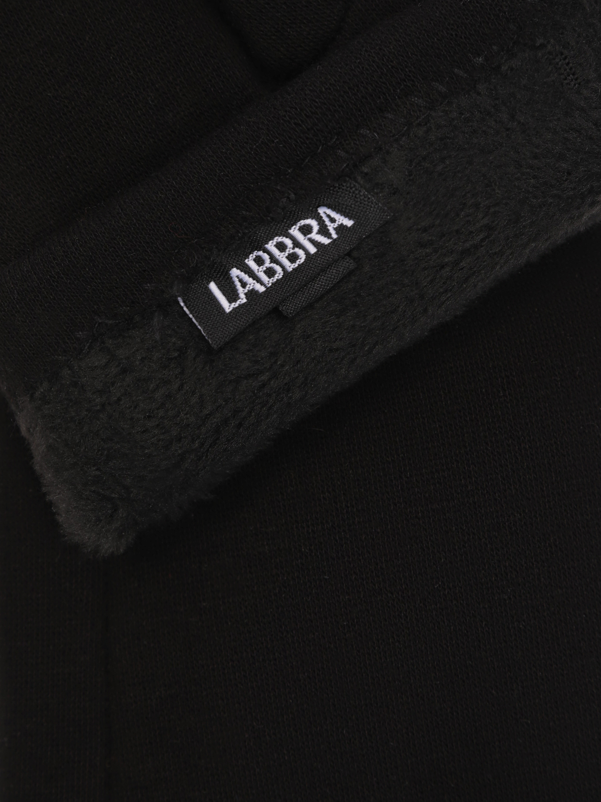 Перчатки женские торговой марки LABBRA производства Китай выполнены из трикотажа. Состав трикотажа: 50% хлопок 50% полиэстер. Отделка края манжеты по всему периметру с использованием экокожи. Длина манжеты от нижней точки большого пальца до края перчатки - 7 см. Длина пальцев - средняя. Модель перчатки универсального размера подойдёт на любую полноту руки благодаря хорошему стрейчу и эластичности трикотажа.