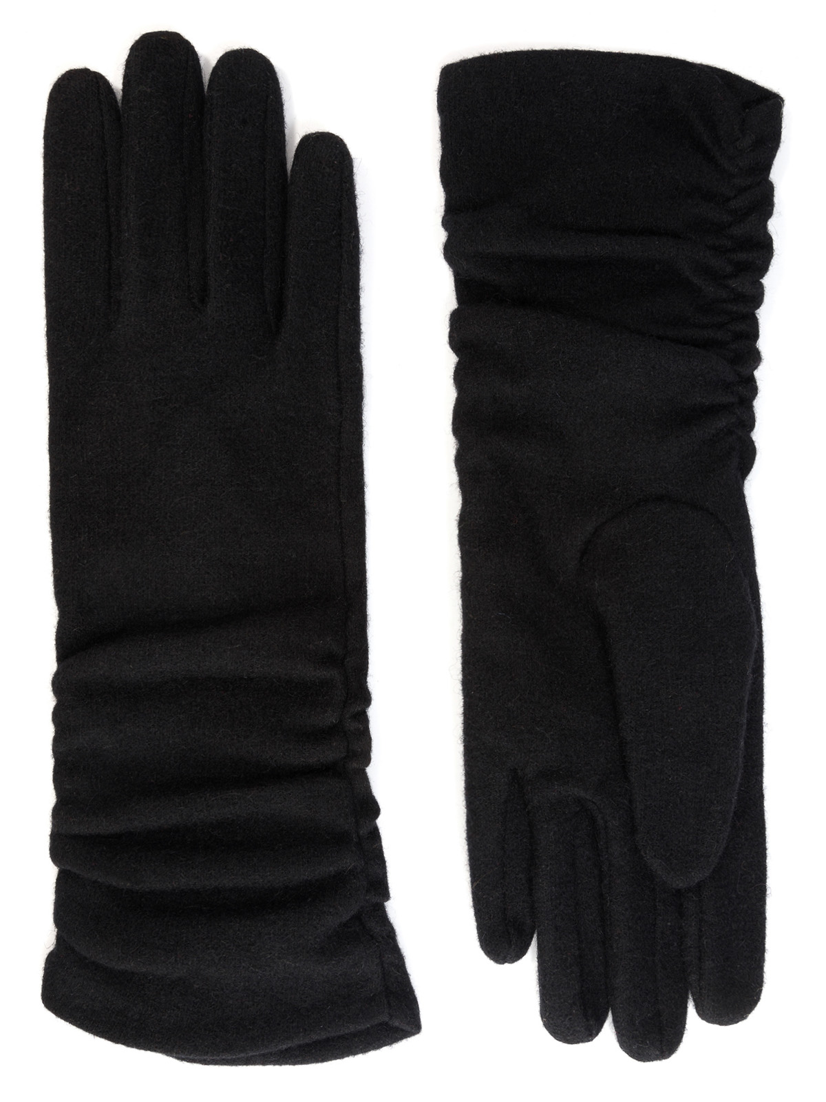 Перчатки женские торговой марки LABBRA производства Китай выполнены из трикотажной шерсти. Состав трикотажа: 80% шерсть 20% нейлон. Отделка - декоративная сборка по всей длине манжеты. Данная модель позволяет работать с сенсорным экраном. Длина манжеты от нижней точки большого пальца до края перчатки - 11 см. Длина пальцев - средняя.