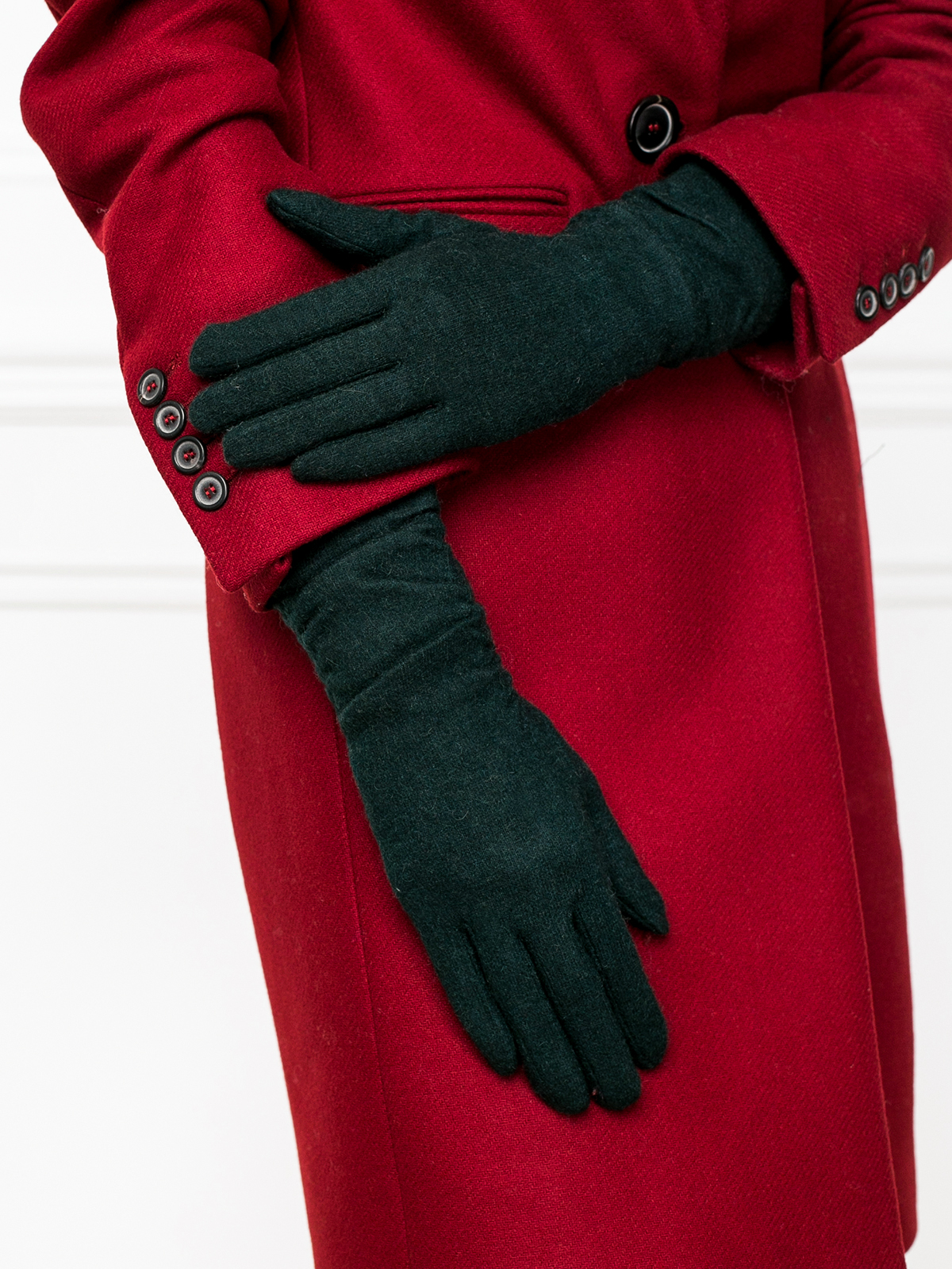 Перчатки женские торговой марки LABBRA производства Китай выполнены из трикотажной шерсти. Состав трикотажа: 80% шерсть 20% нейлон. Отделка - декоративная сборка по всей длине манжеты. Данная модель позволяет работать с сенсорным экраном. Длина манжеты от нижней точки большого пальца до края перчатки - 11 см. Длина пальцев - средняя.