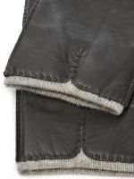 Перчатки торговой марки LABBRA из натуральной кожи ягненка. Производитель Китай. Подкладка: 70% шерсть 30% акрил. Модель с наружними ручными швами что гарантирует максимальный комфорт внутри. Декоративный варез на лицевой части откуда просвечивает подклад. Длина манжеты от нижней точки большого пальца до края перчаток - 5 см. Длина пальцев - укороченные.