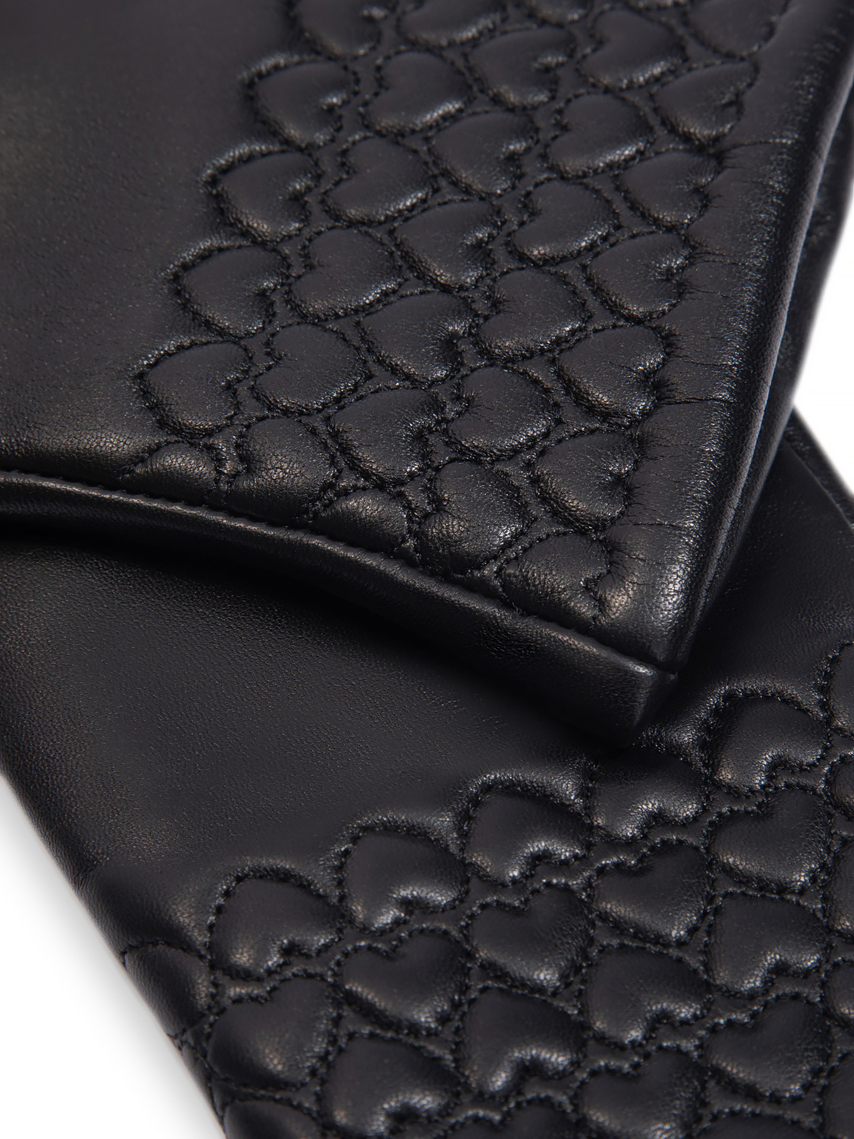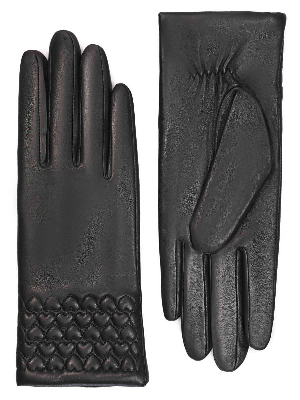 Перчатки женские торговой марки LABBRA производства Китай. Выполнены из натуральной кожи ягненка. Подкладка - 70% шерсть 30% акрил. Отделка - декоративные обьемные строчки по манжету в виду сердечек. Длина манжеты от нижней точки большого пальца до края перчаток - 5 см. Длина пальцев - средняя.