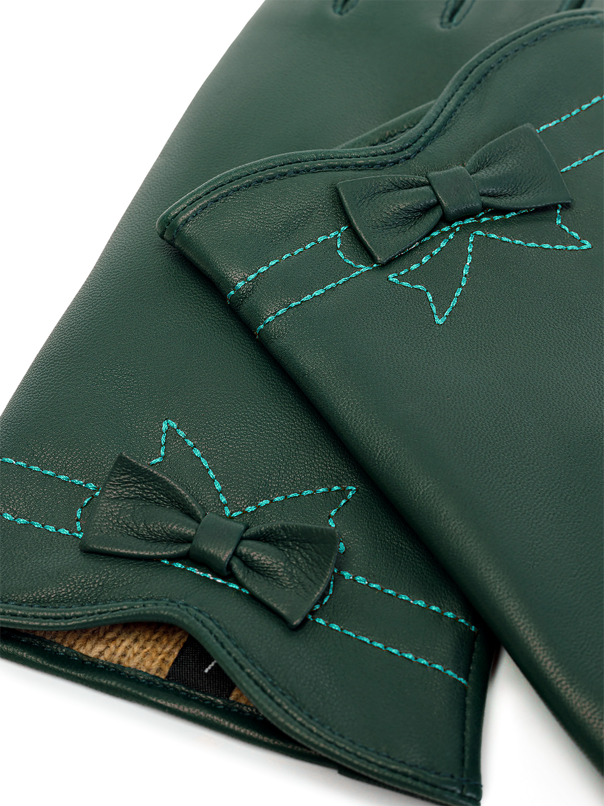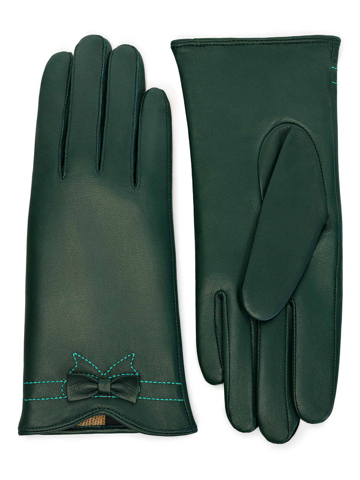 Перчатки женские торговой марки LABBRA производства Китай. Выполнены из натуральной кожи ягненка. Подкладка - 70% шерсть 30% акрил. Отделка - отстрочка ниткой контрастного цвета в форме банта. Длина манжеты от нижней точки большого пальца до края перчаток - 5 см. Длина пальцев - средняя.