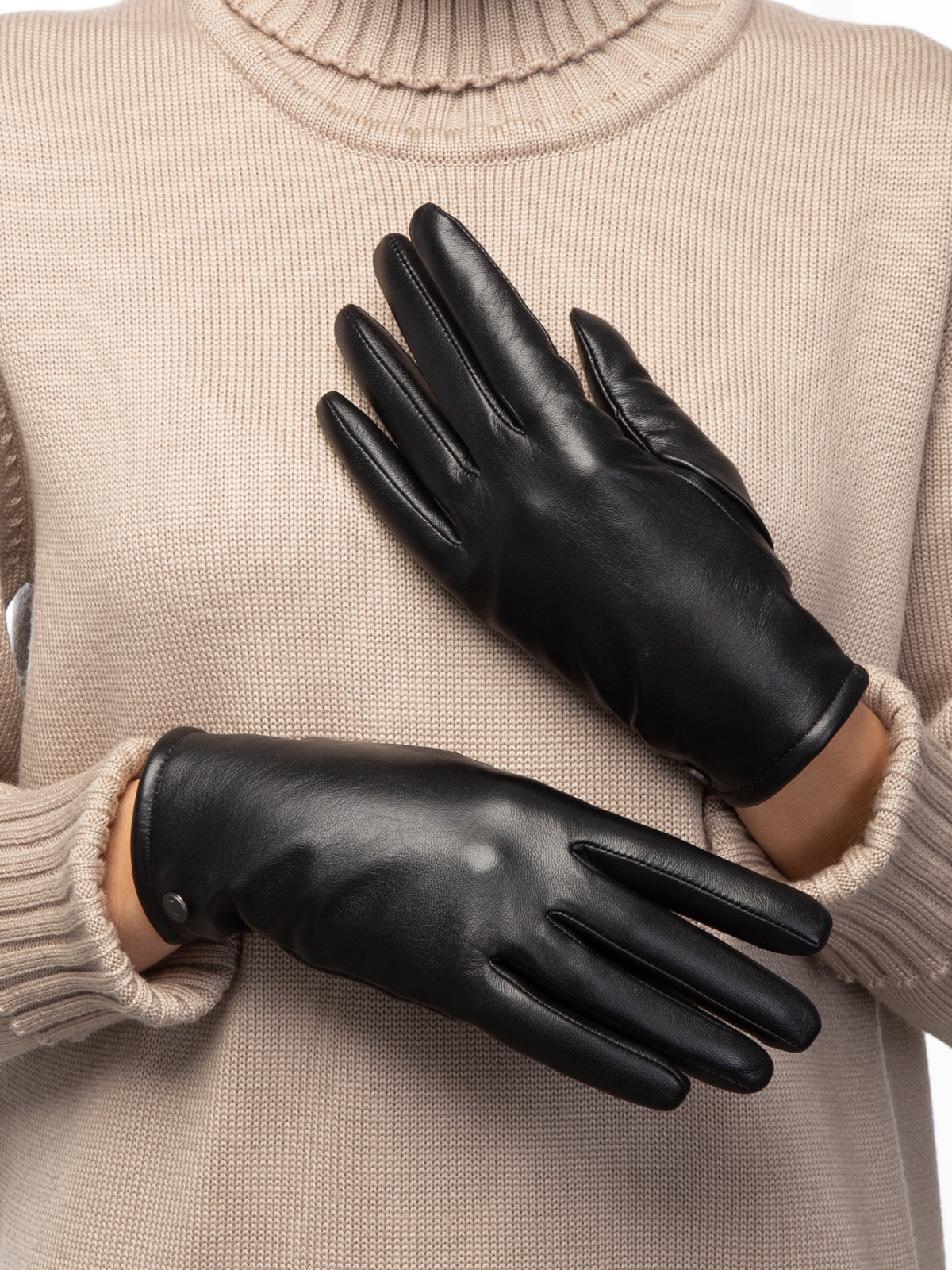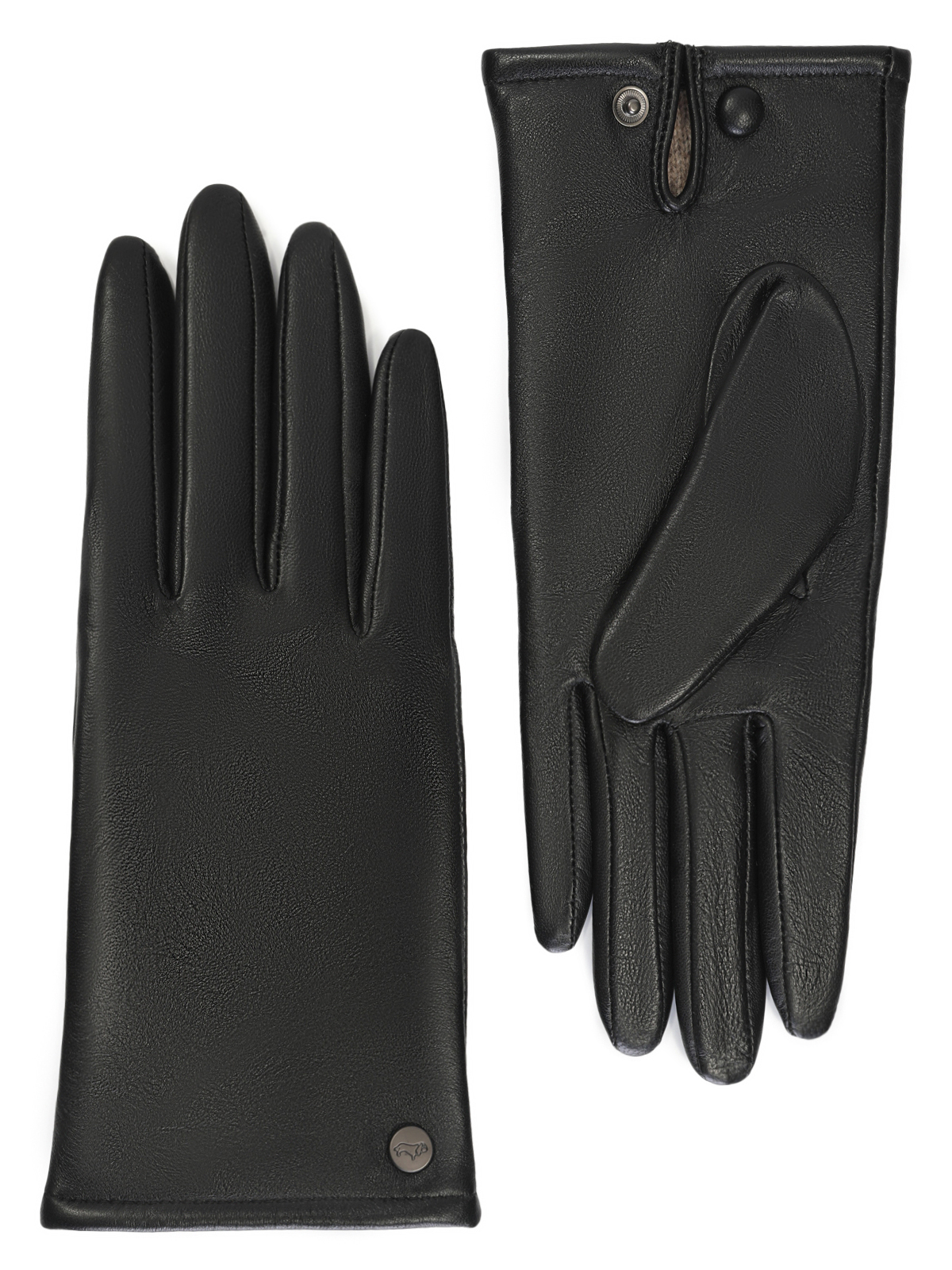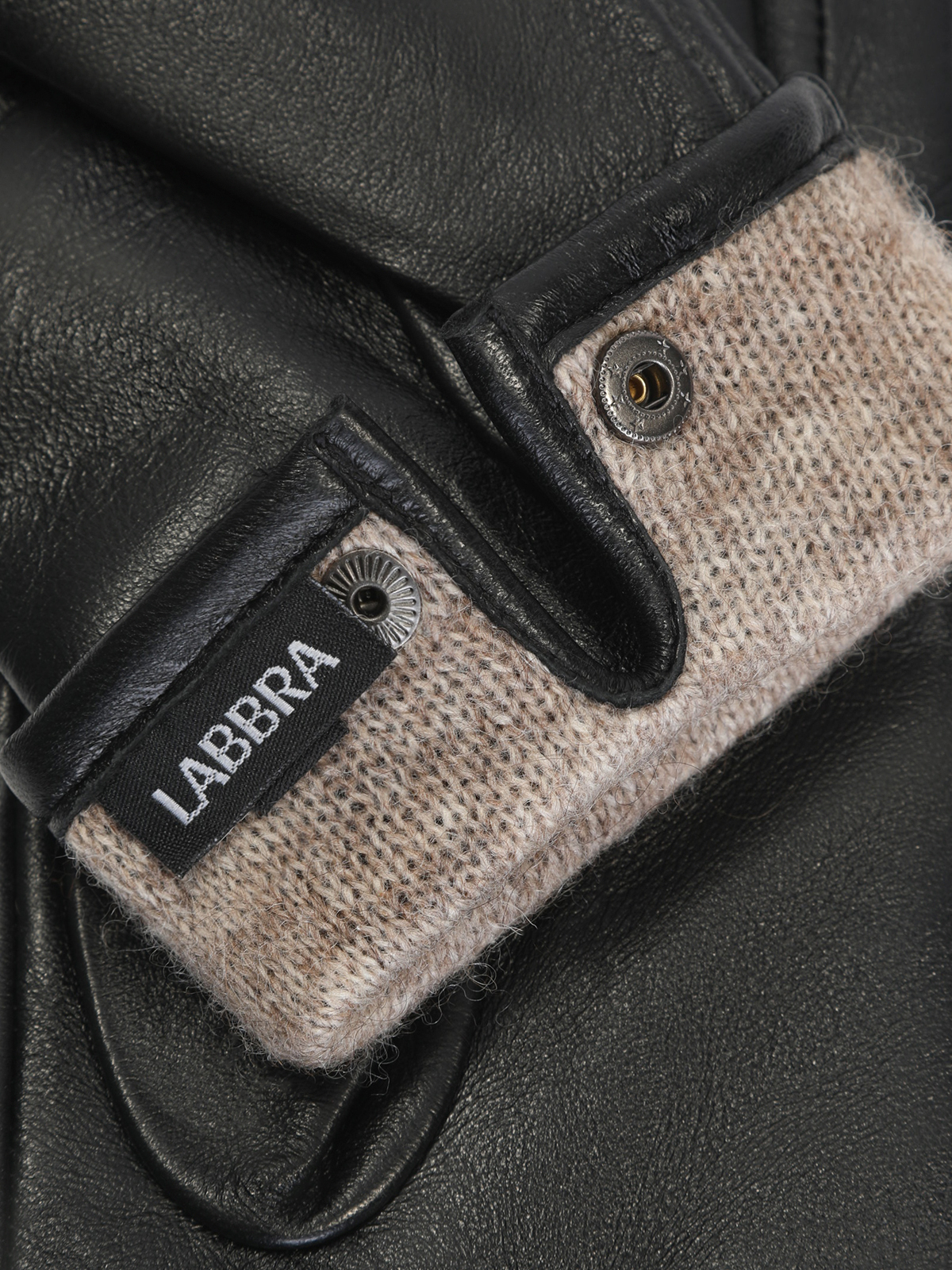 Перчатки торговой марки LABBRA из натуральной кожи ягненка. Производитель Китай. Подкладка: 70% шерсть 30% акрил. Отделка - декоративная фурнитура с фирменной символикой; разрез на ладонной части на рабочей кнопке. Длина манжеты от нижней точки большого пальца до края перчаток - 5 см. Длина пальцев - средняя.