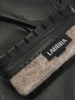 Перчатки женские торговой марки LABBRA из натуральной кожи ягненка. Производитель Китай. Подкладка: 70% шерсть 30% акрил. Отделка - манжета перфорирована по краю со вставкой из натурального велюра; фурнитура с фирменной символикой. Длина манжеты от нижней точки большого пальца до края перчаток - 65 см. Длина пальцев - средняя.