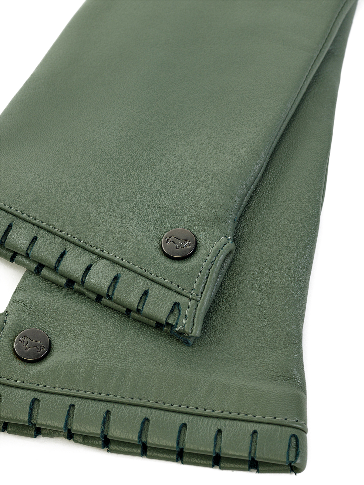 Перчатки женские торговой марки LABBRA из натуральной кожи ягненка. Производитель Китай. Подкладка: 70% шерсть 30% акрил. Отделка - манжета перфорирована по краю со вставкой из натурального велюра; фурнитура с фирменной символикой. Длина манжеты от нижней точки большого пальца до края перчаток - 65 см. Длина пальцев - средняя.