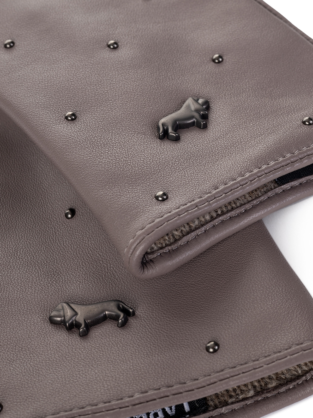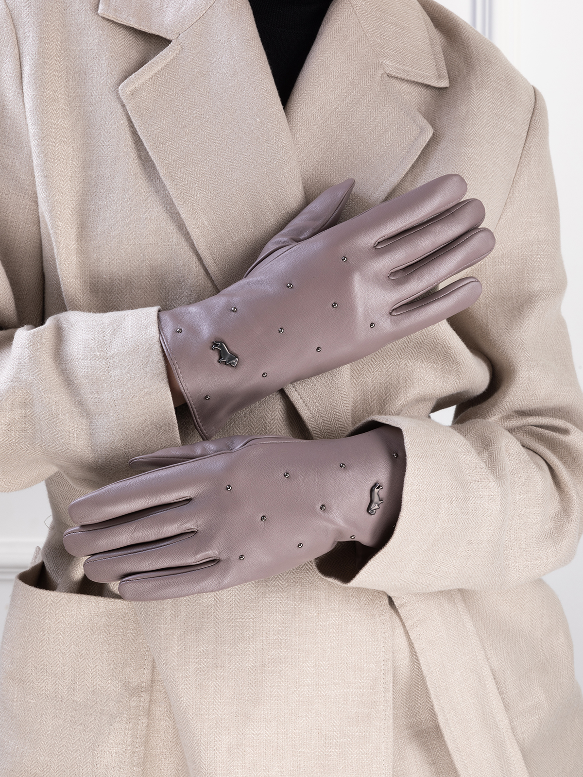 Перчатки женские торговой марки LABBRA из натуральной кожи ягненка. Производитель Китай. Подкладка: 70% шерсть 30% акрил. Отделка - металлические хольнитены на лицевой части и фирменная фурнитура LABBRA. Длина манжеты от нижней точки большого пальца до края перчаток - 55 см. Длина пальцев - средняя.