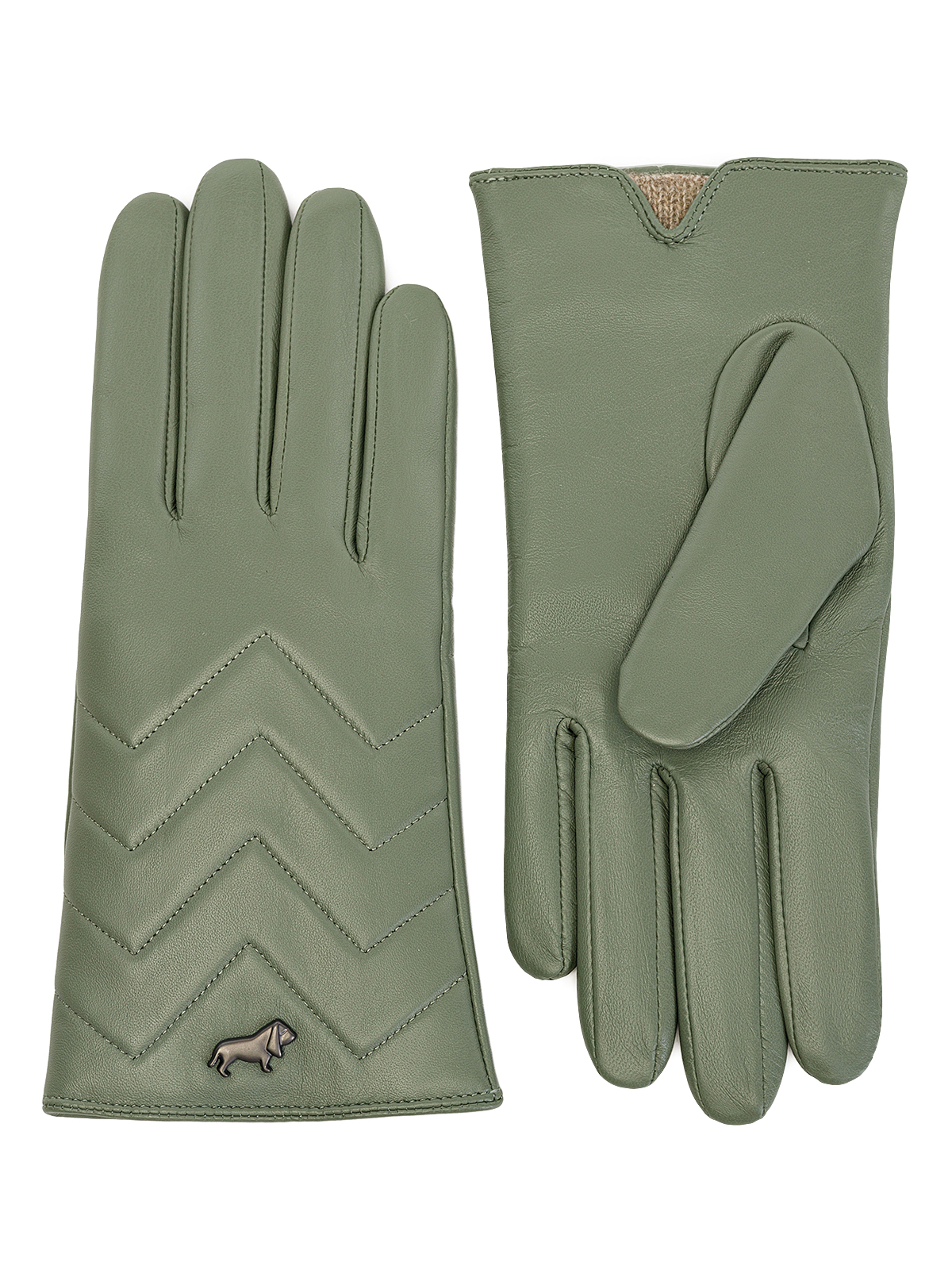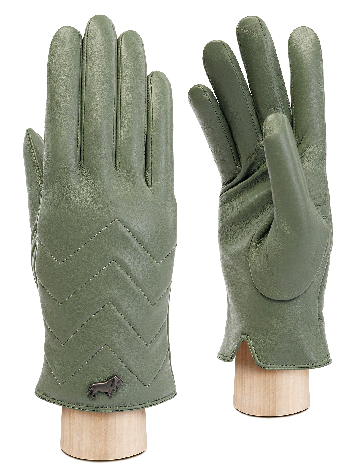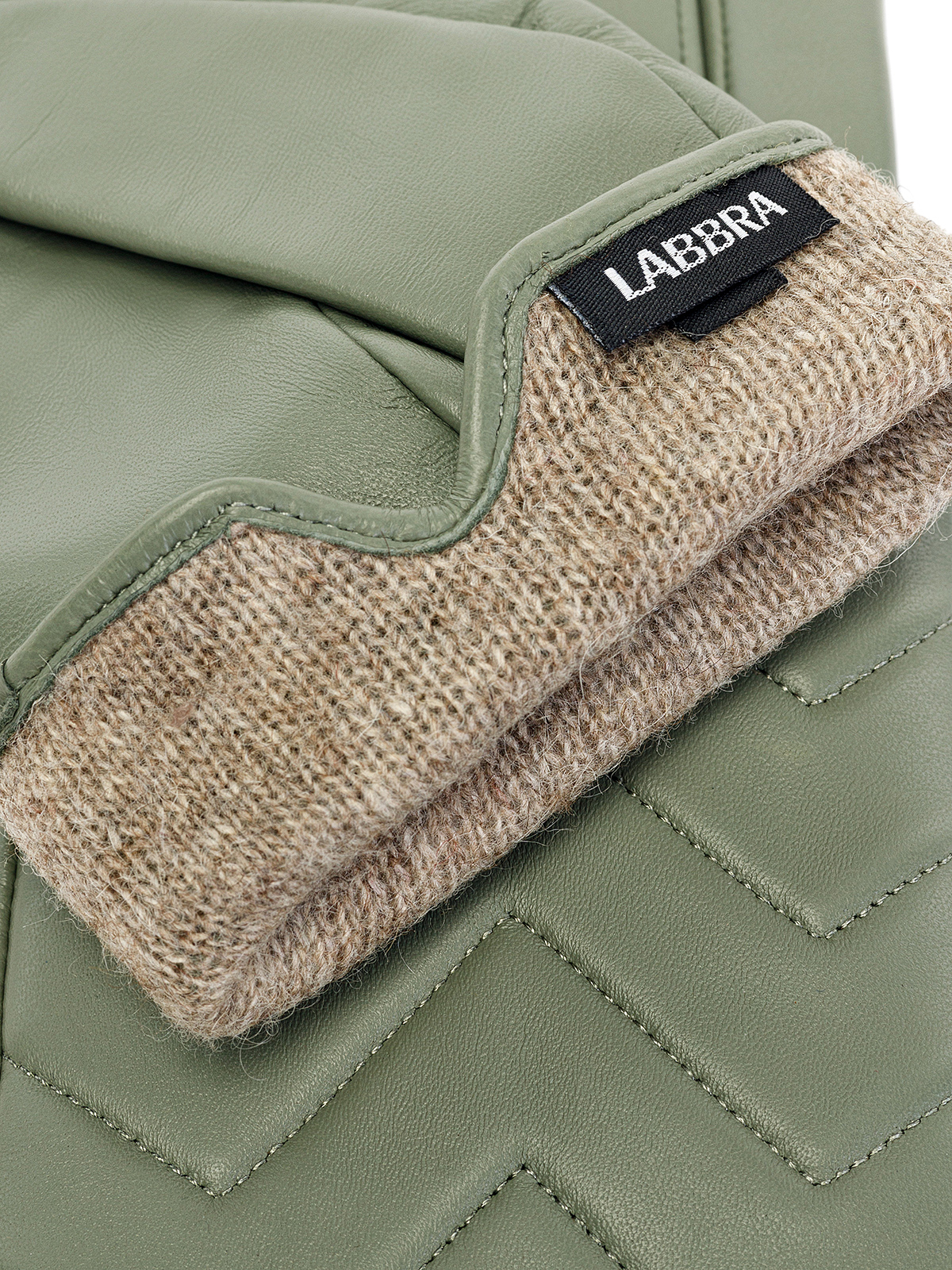 Перчатки женские торговой марки LABBRA из натуральной кожи ягненка. Производитель Китай. Подкладка: 70% шерсть 30% акрил. Отделка - отстрочки в форме зигзага на лицевой части и фирменная фурнитура LABBRA по краю манжета. Длина манжеты от нижней точки большого пальца до края перчаток - 45 см. Длина пальцев - средняя.