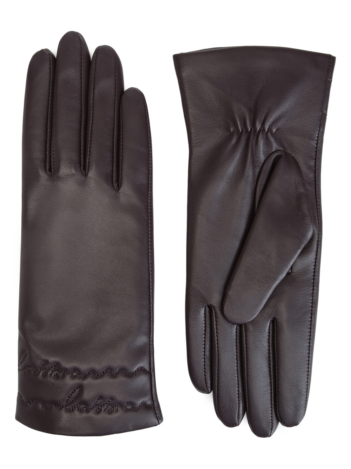 Перчатки женские торговой марки LABBRA производства Китай. Выполнены из натуральной кожи ягненка. Подкладка - 70% шерсть 30% акрил. Отделка - горизонтальная декоративная отстрочка логотипом LABBRA на манжете. Длина манжеты от нижней точки большого пальца до края перчаток - 65 см. Длина пальцев - средняя.