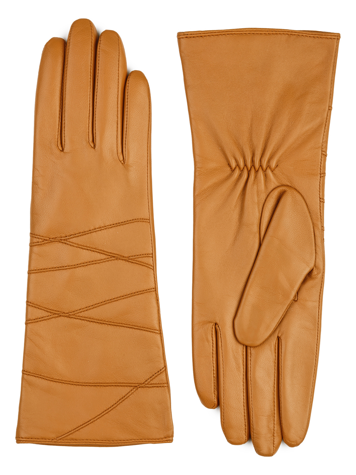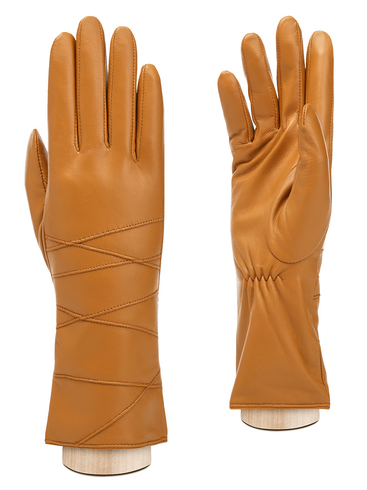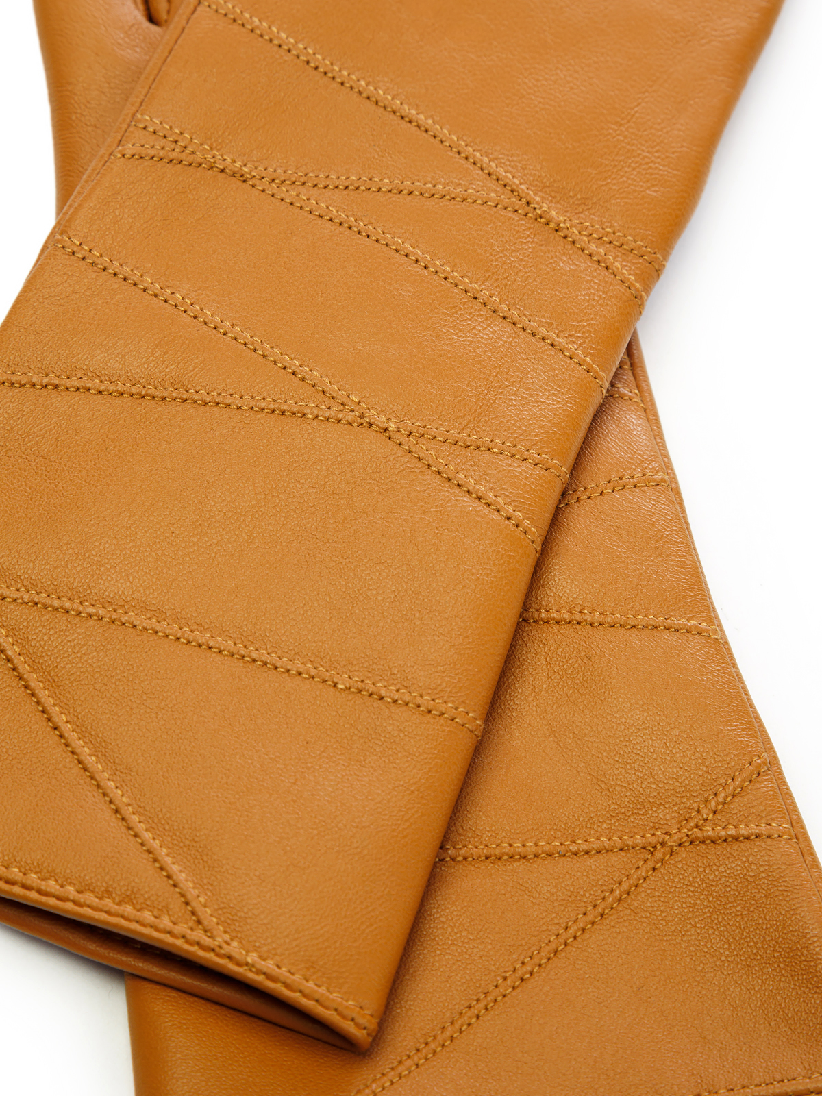 Перчатки женские торговой марки LABBRA производства Китай. Выполнены из натуральной кожи ягненка. Подкладка - 70% шерсть 30% акрил. Отделка - декоративные геометричные строчки машинными швами на лицевой стороне. Длина манжеты от нижней точки большого пальца до края перчаток - 10 см. Длина пальцев - средняя.