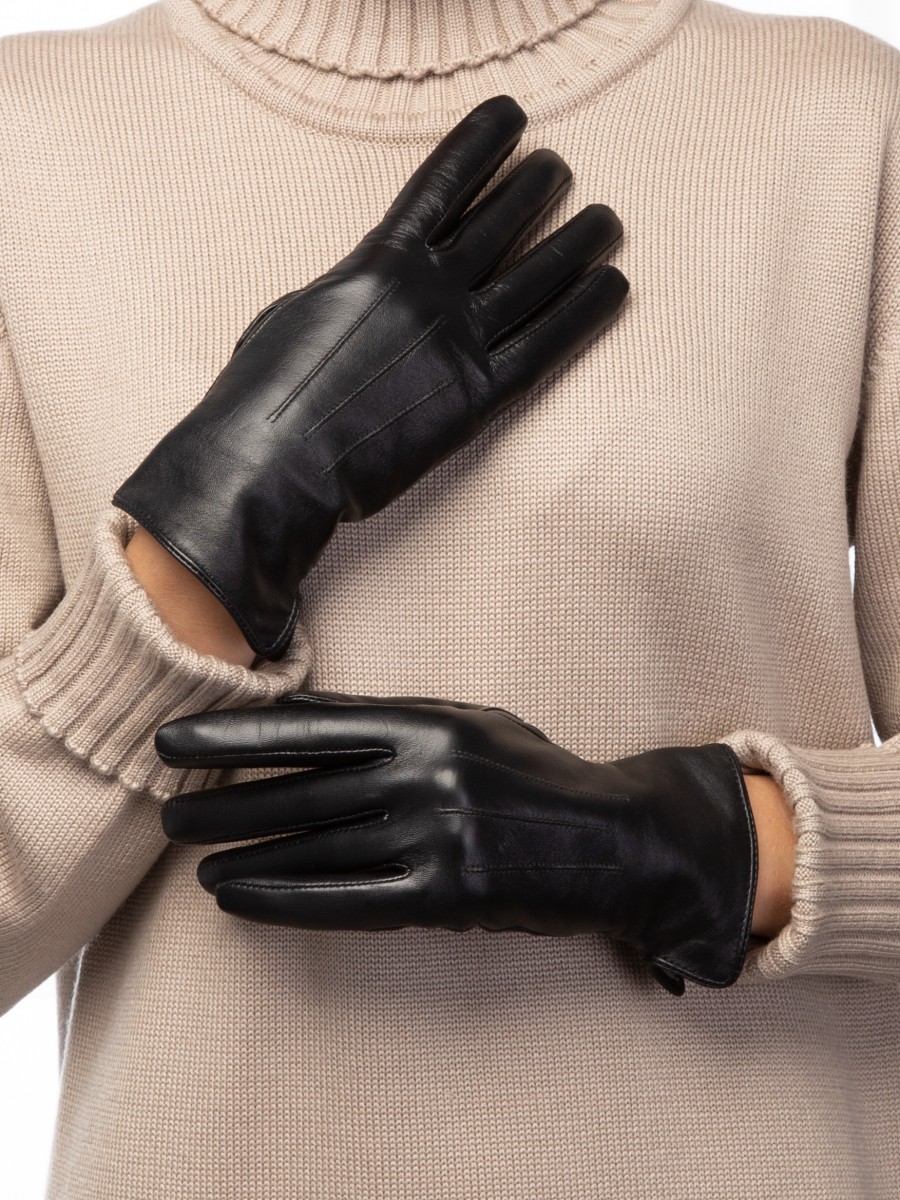 Перчатки женские торговой марки LABBRA производства Китай. Выполнены из натуральной кожи ягненка. Подкладка - 70% шерсть + 30% акрил. Отделка - декоративные машинные швы 3 луча". Длина манжеты от нижней точки большого пальца до края перчаток - 6 см. Длина пальцев - средняя."
