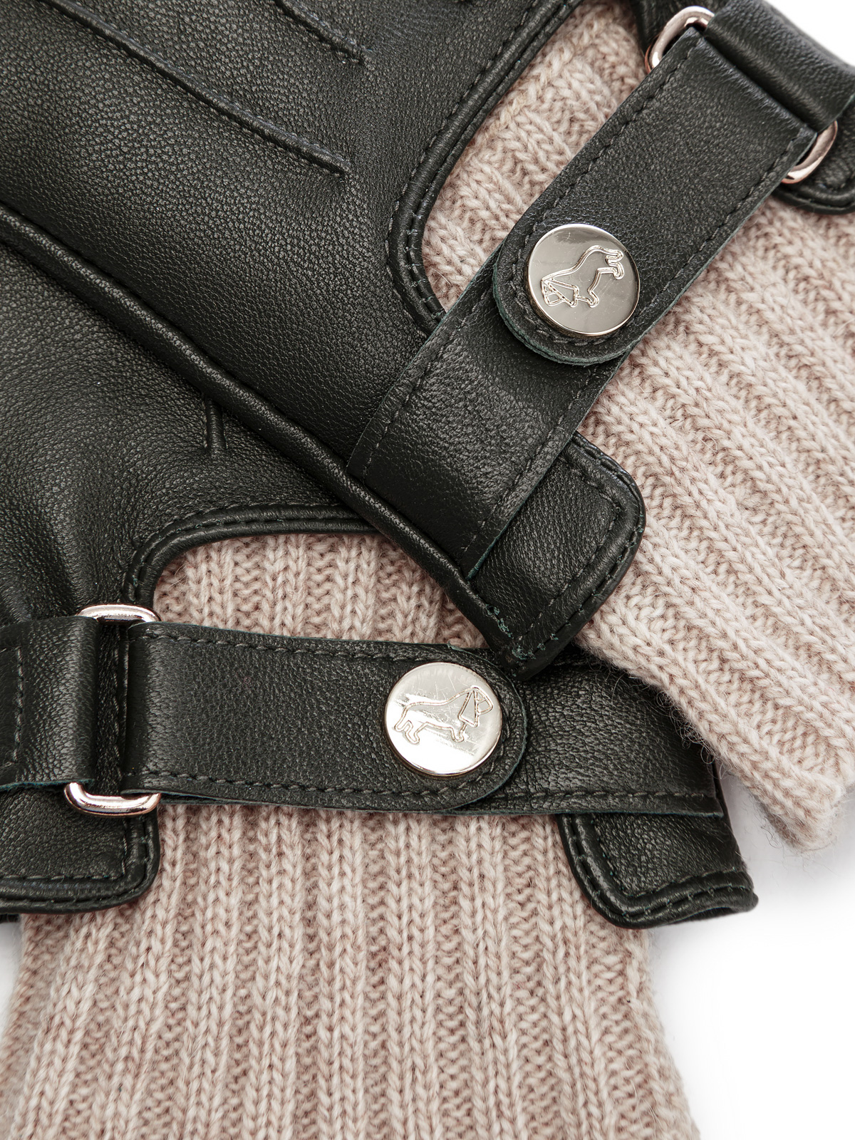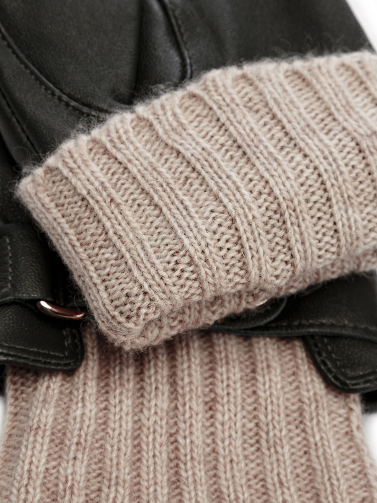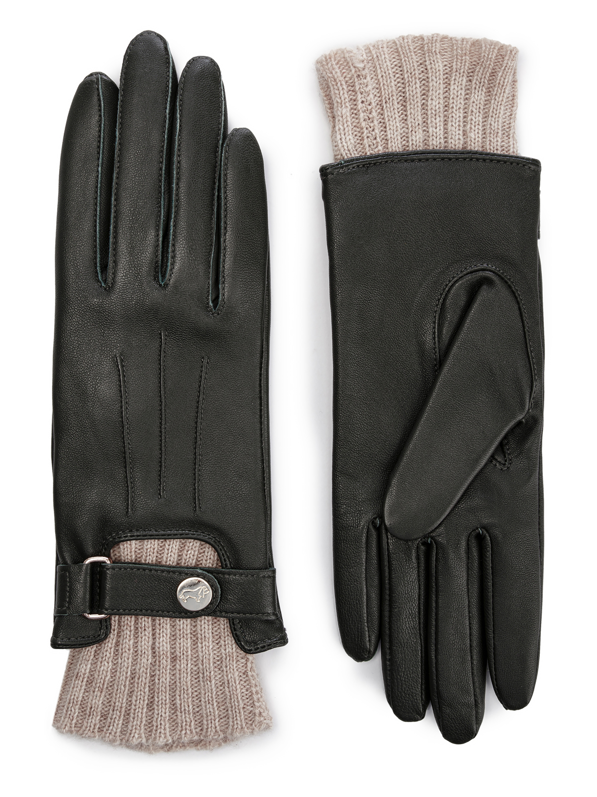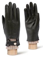 Перчатки женские торговой марки LABBRA производства Китай. Выполнены из натуральной кожи ягненка. Подкладка - 70% шерсть + 30% акрил. Декоративная отделка трикотажной манжетой и ремешком. Длина манжеты от нижней точки большого пальца до края перчаток - 4.5 см. Длина пальцев - средняя.
