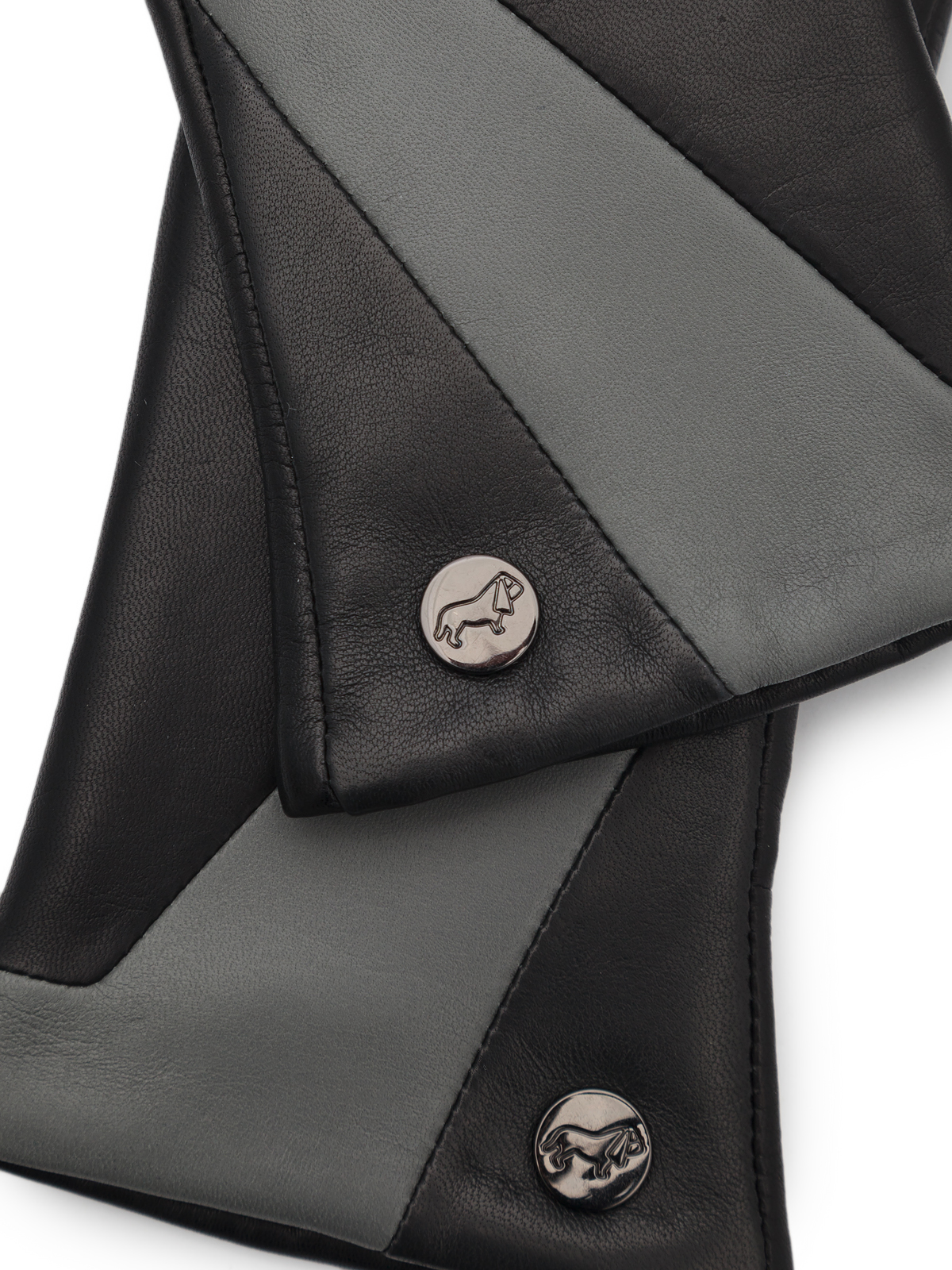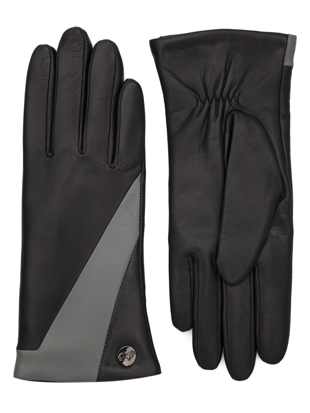 Перчатки женские торговой марки LABBRA производства Китай. Выполнены из натуральной кожи ягненка. Подкладка - 70% шерсть 30% акрил. Отделка - декоративные элементы геометрической формы из кожи контрастного цвета на лицевой стороне перчатки. Длина манжеты от нижней точки большого пальца до края перчаток - 5 см. Длина пальцев - средняя.