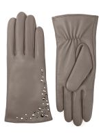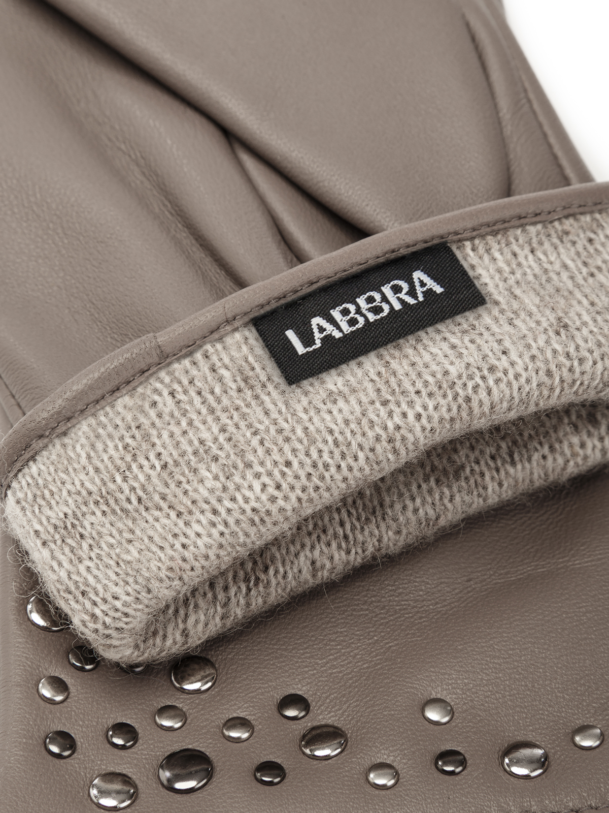 Перчатки женские торговой марки LABBRA производства Китай. Выполнены из натуральной кожи ягненка. Подкладка: 70% шерсть + 30% акрил. Отделка - декоративные хольнитены разного размера и цвета по внешней стороне ладони. Длина манжеты от нижней точки большого пальца до края перчаток - 6 см. Длина пальцев - средняя.