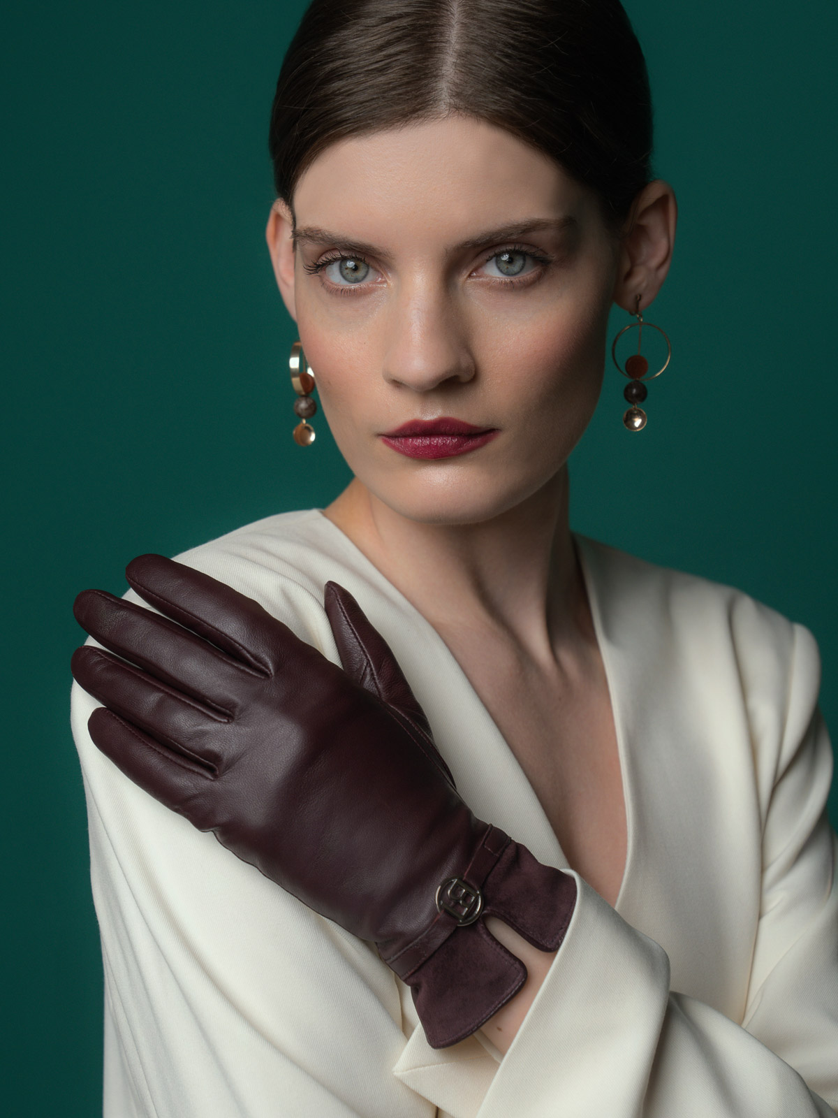 Перчатки женские торговой марки LABBRA производства Китай. Выполнены из натуральной кожи ягненка. Подкладка: 70% шерсть + 30% акрил. Перчатка выполнена из кожи с отделкой из велюра на манжете. В области запястья украшена декоративным ремешком с фурнитурой с фирменной символикой по центру. Длина манжеты от нижней точки большого пальца до края перчаток - 6 см. Длина пальцев - средняя.