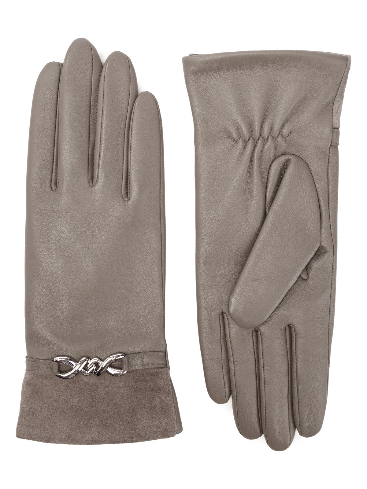 Перчатки женские торговой марки LABBRA производства Китай. Выполнены из натуральной кожи ягненка. Подкладка: 70% шерсть + 30% акрил. Отделка - декор в форме цепочки расположенный в области запястья на манжете из велюра. Длина манжеты от нижней точки большого пальца до края перчаток - 6 см. Длина пальцев - средняя.