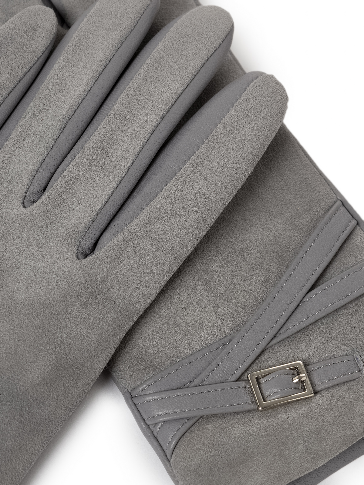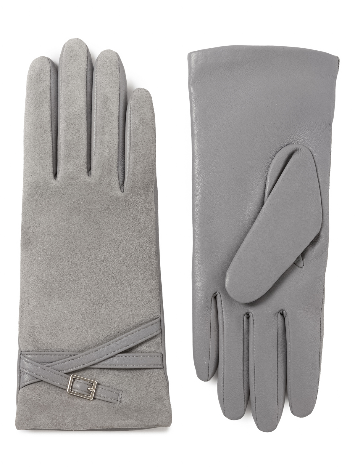 Перчатки женские торговой марки LABBRA. Выполнены из высококачественной кожи ягненка и натурального велюра в тон изделия. Дополнены смесовым шерстяным подкладом. Украшены декоративными тонкими ремешками и минималистичной пряжкой на манжете. Модель со средней длиной пальцев и длиной манжеты от нижней точки большого пальца до края перчаток - 6 см.
