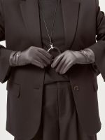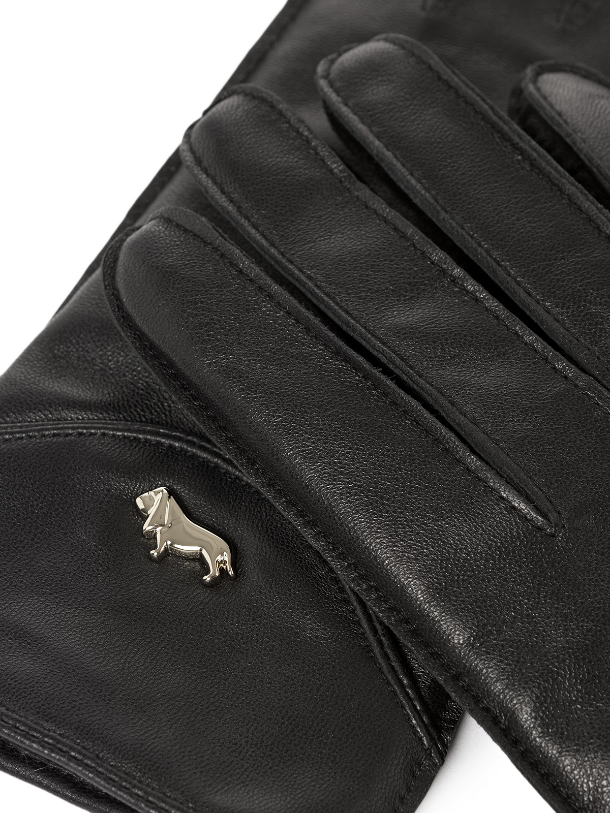 Перчатки женские торговой марки LABBRA. Выполнены из высококачественной натуральной кожи ягненка в трендовом цвете сезона. Дополнены смесовым шерстяным подкладом. Декорированы открытыми швами на манжете и фирменной фурнитурой с символикой бренда - собачкой. Модель со средней длиной пальцев и длиной манжеты от нижней точки большого пальца до края перчаток - 6 см.