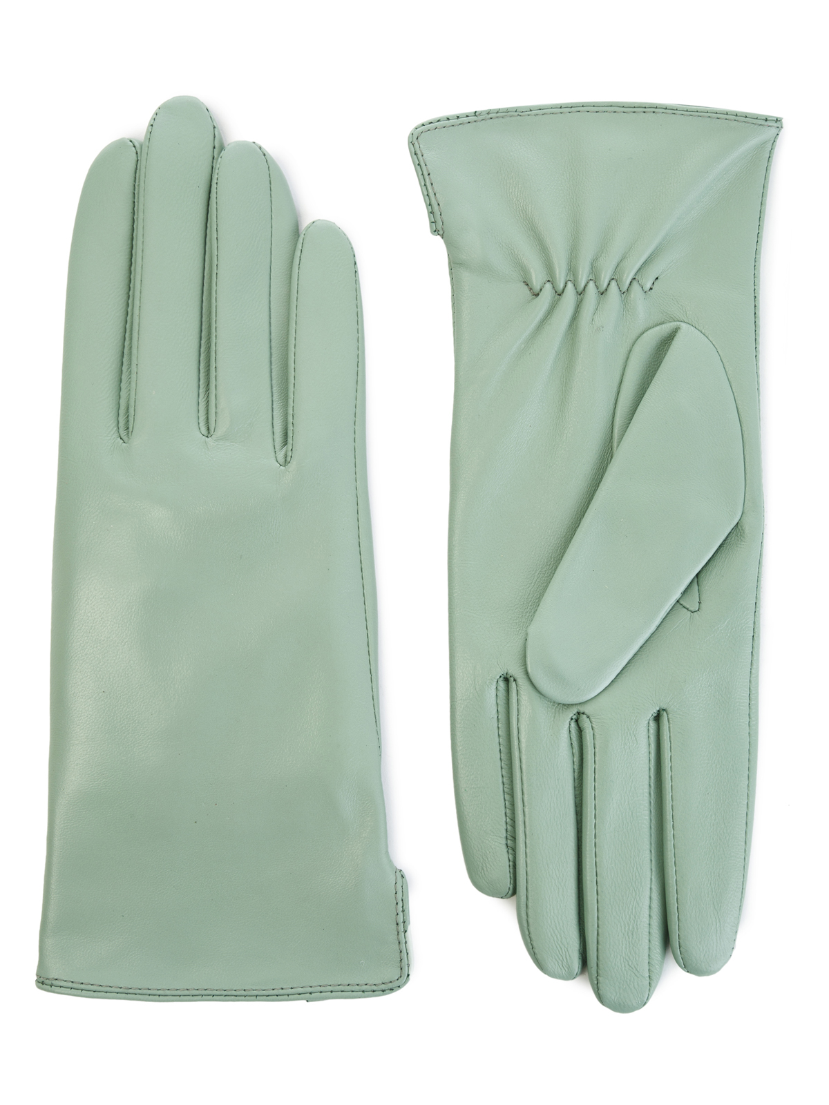 Перчатки женские торговой марки LABBRA производства Китай. Выполнены из натуральной кожи ягненка. Подкладка: шелк. Отделка - боковой разрез по линии мизинца. Длина манжеты от нижней точки большого пальца до края перчаток - 6 см. Длина пальцев - средняя.