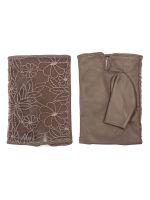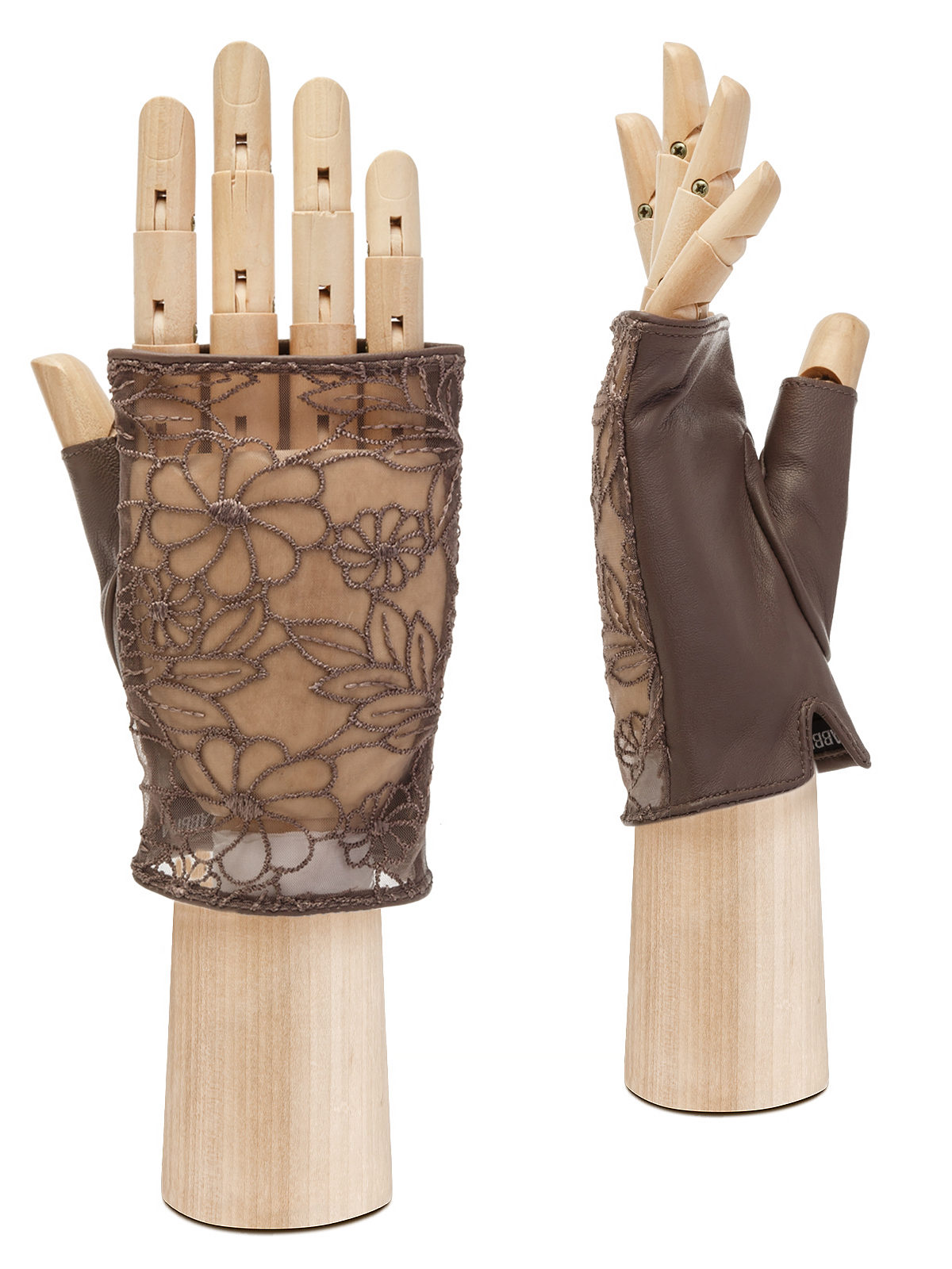 Митенки женские торговой марки LABBRA производства Китай. Ладонная часть выполнена из натуральной кожи ягненка лицевая часть: из гипюра. Без подкладки. Длина манжеты от нижней точки большого пальца до края перчаток - 25 см.
