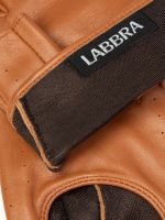 Автомобильные перчатки торговой марки LABBRA производства Китай. Изготовлены из натуральной кожи ягненка. Отделка - декоративная перфорация. Вырез с кнопкой (рабочая) с фирменной символикой LABBRA. Перчатки с шелковой подкладкой. Длина манжеты от нижней точки большого пальца до края перчаток - 25 см.