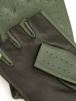 Автомобильные перчатки торговой марки LABBRA производства Китай. Изготовлены из натуральной кожи ягненка. Отделка - декоративная перфорация. Вырез с кнопкой (рабочая) с фирменной символикой LABBRA. Перчатки с шелковой подкладкой. Длина манжеты от нижней точки большого пальца до края перчаток - 25 см.