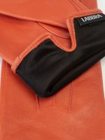 Перчатки торговой марки LABBRA из натуральной кожи ягненка. Производитель Китай. Подкладка: шелк. Отделка - машинная строчка три луча" фирменная фурнитура в виде собачки. Длина манжеты от нижней точки большого пальца до края перчаток - 6 см. Длина пальцев - средняя."